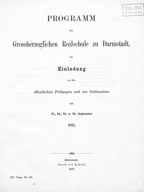 Programm der Großherzoglichen Realschule zu Darmstadt