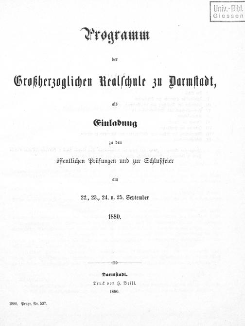 Programm der Großherzoglichen Realschule zu Darmstadt