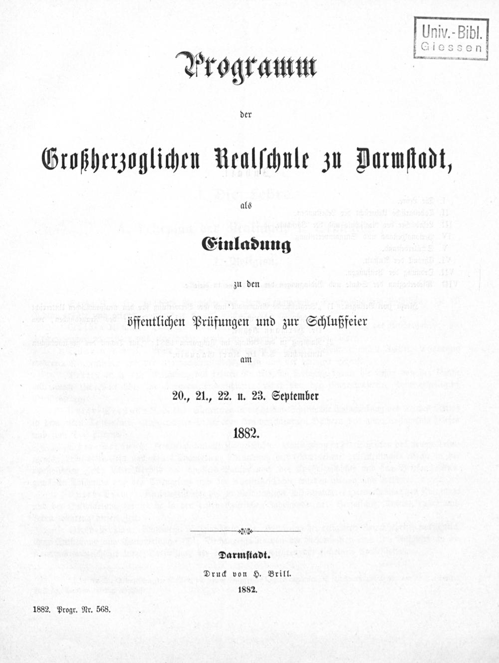 Programm der Großherzoglichen Realschule zu Darmstadt