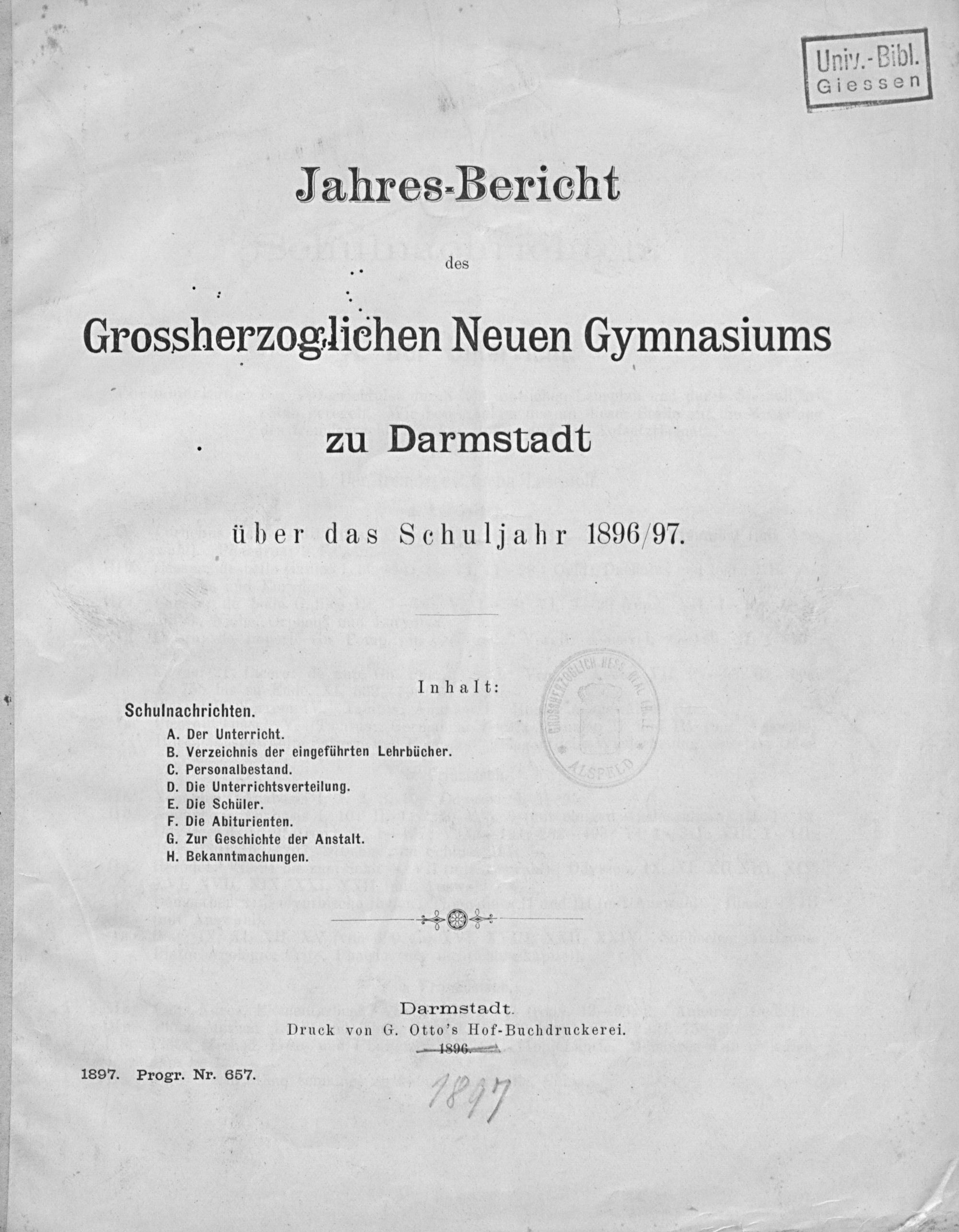 Jahresbericht des Grossherzoglichen Neuen Gymnasiums zu Darmstadt