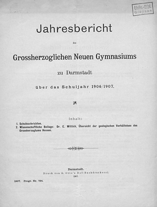 Jahresbericht des Grossherzoglichen Neuen Gymnasiums zu Darmstadt
