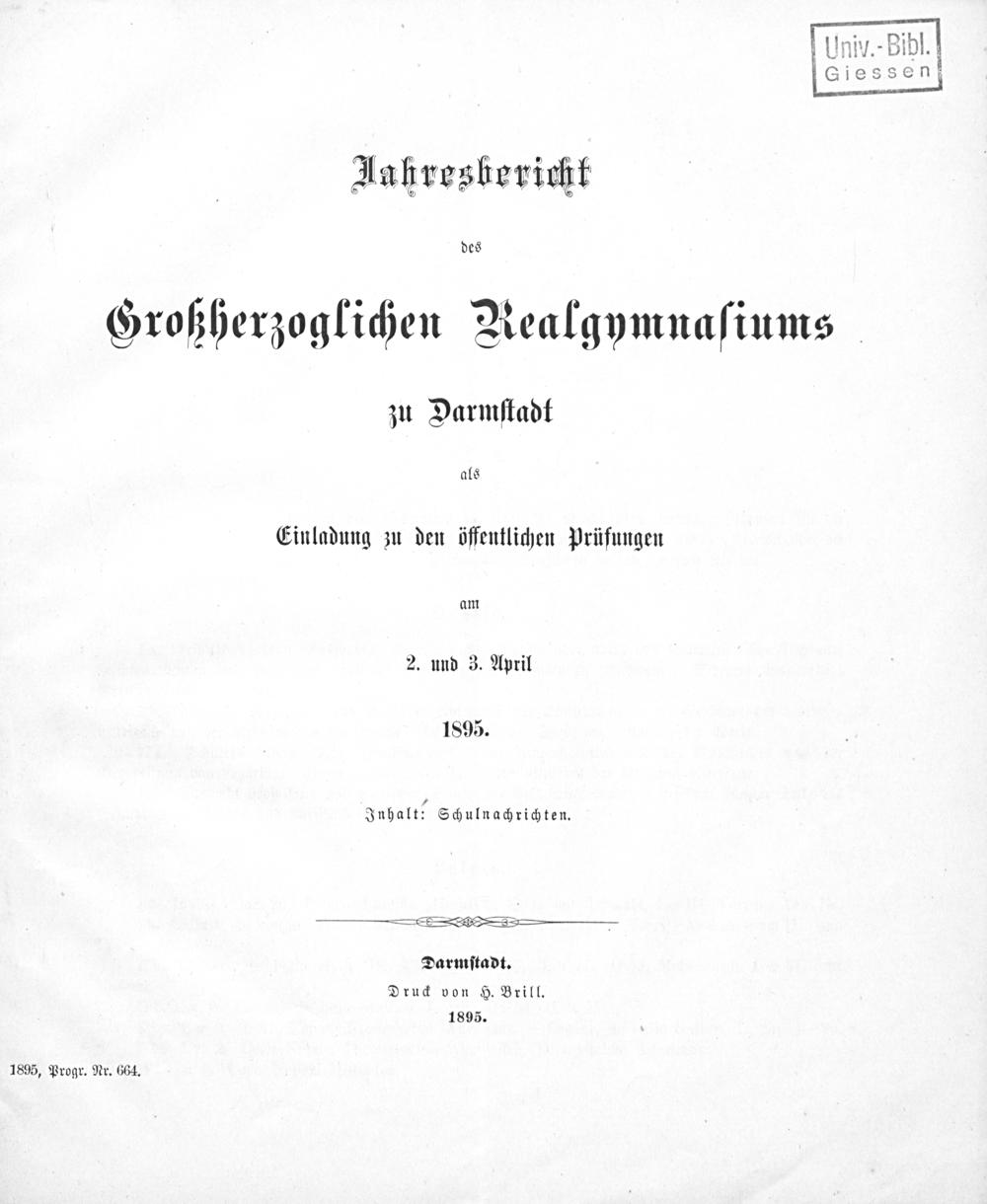 Jahresbericht des Großherzoglichen Realgymnasiums zu Darmstadt