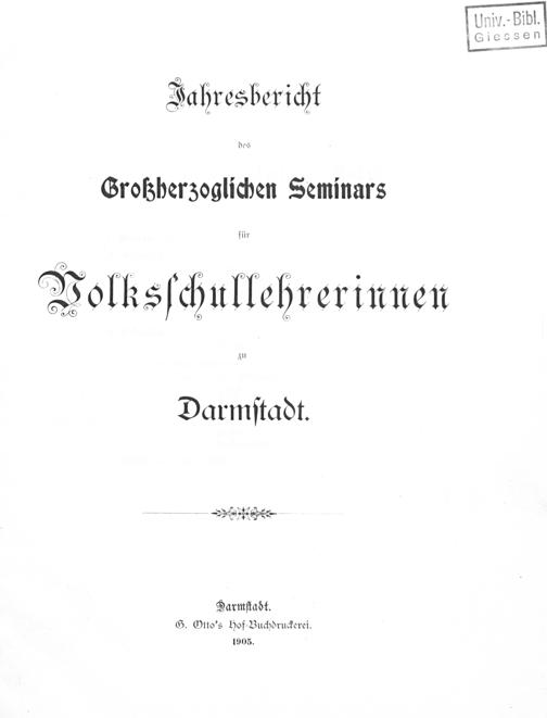 Jahresbericht des Großherzoglichen Seminars für Volksschullehrerinnen zu Darmstadt