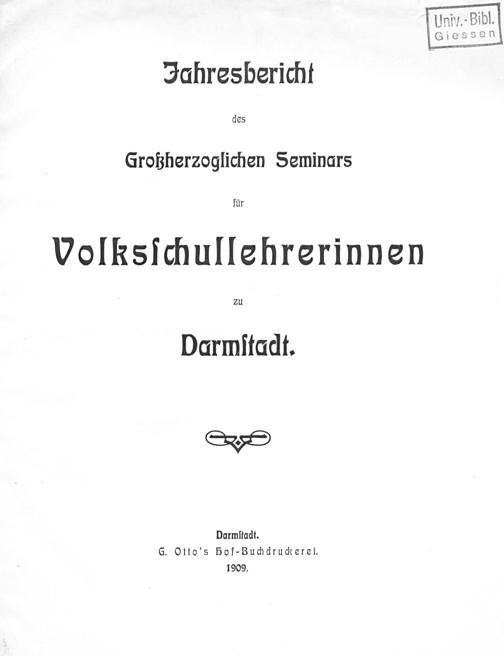 Jahresbericht des Großherzoglichen Seminars für Volksschullehrerinnen zu Darmstadt