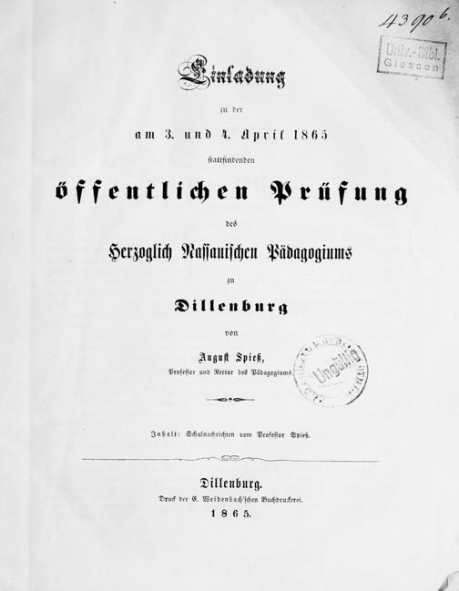 Einladung zu der am ... stattfindenden öffentlichen Prüfung des Herzoglich-Nassauischen Pädagogiums zu Dillenburg