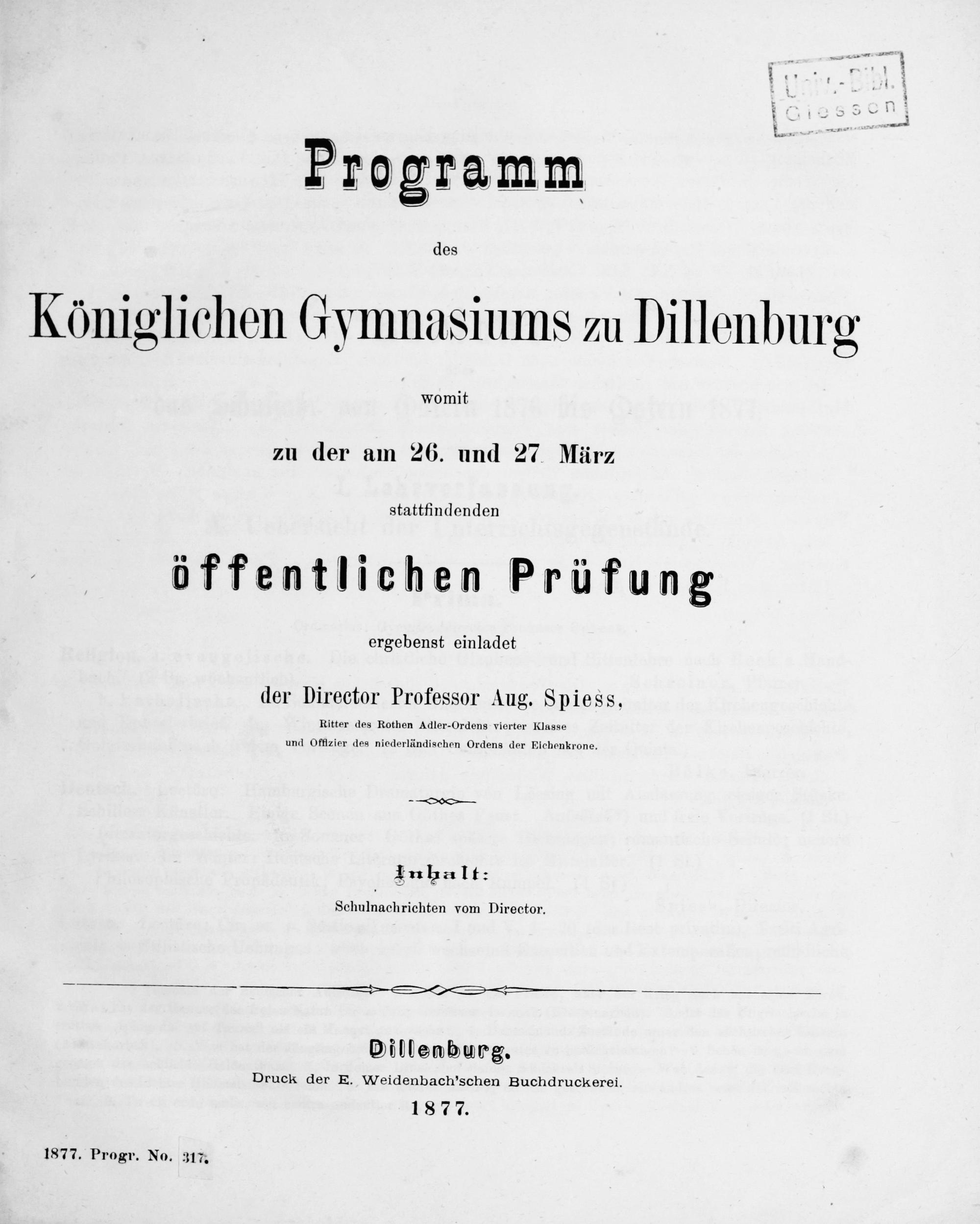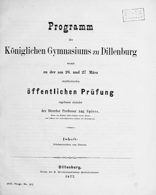 Programm des Königlichen Gymnasiums zu Dillenburg