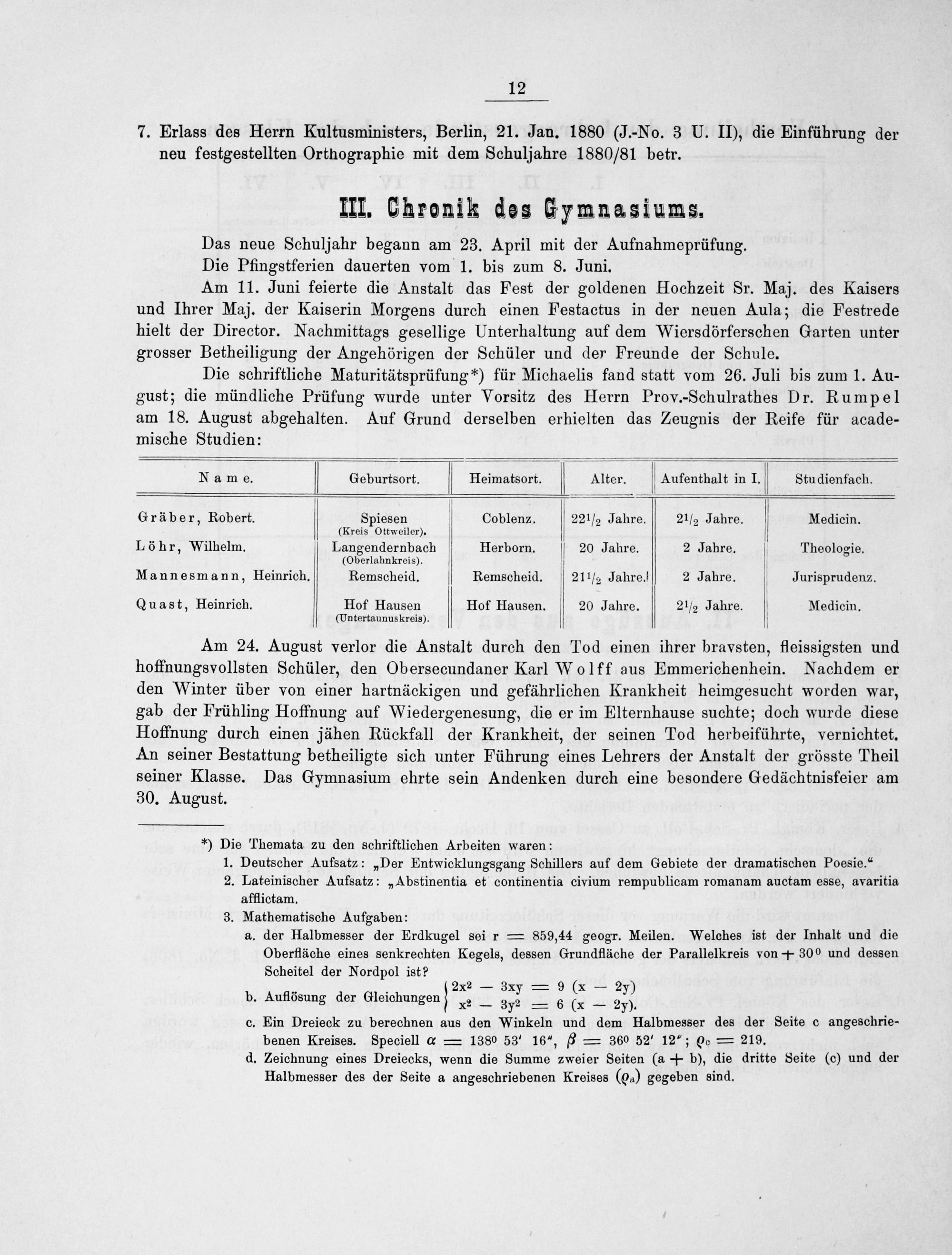 Programm des Königlichen Gymnasiums zu Dillenburg