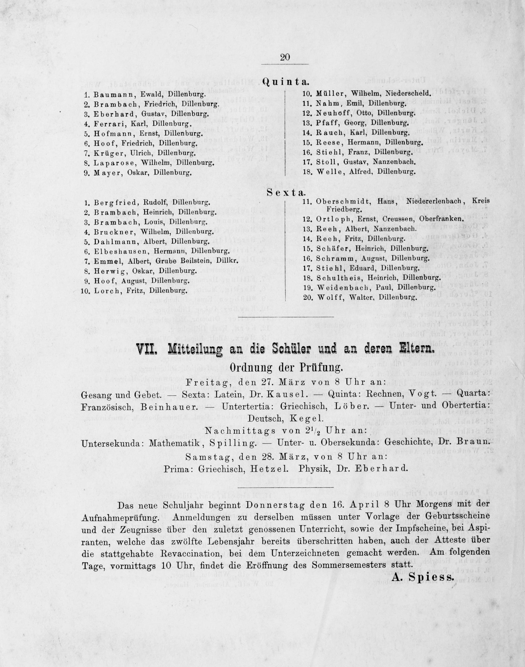 Programm des Königlichen Gymnasiums zu Dillenburg