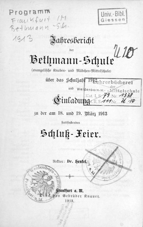 Jahresbericht der Bethmann-Schule (Evangelische Knaben- und Mädchen-Mittelschule) über das Schuljahr ...