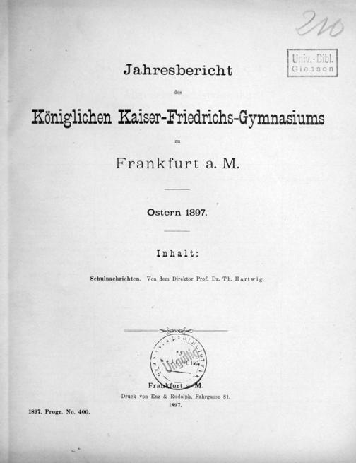 Jahresbericht des Kgl. Kaiser-Friedrichs-Gymnasiums zu Frankfurt am Main