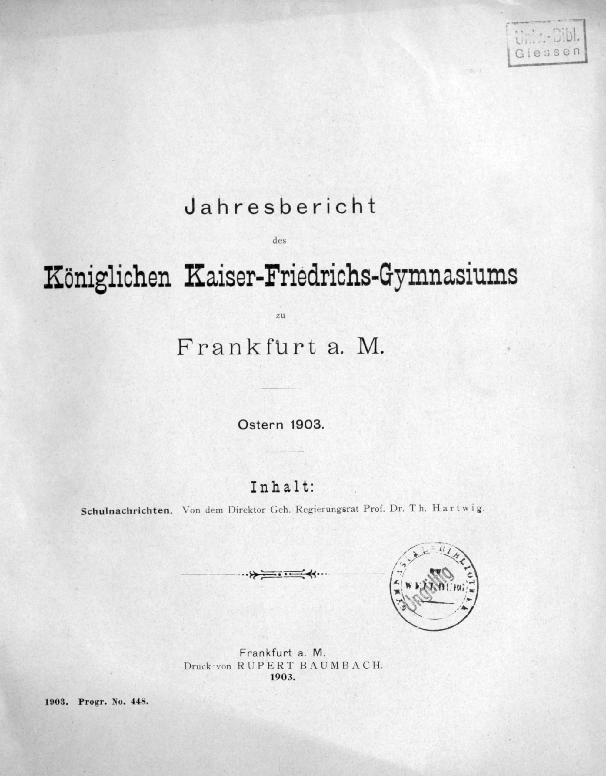 Jahresbericht des Kgl. Kaiser-Friedrichs-Gymnasiums zu Frankfurt am Main