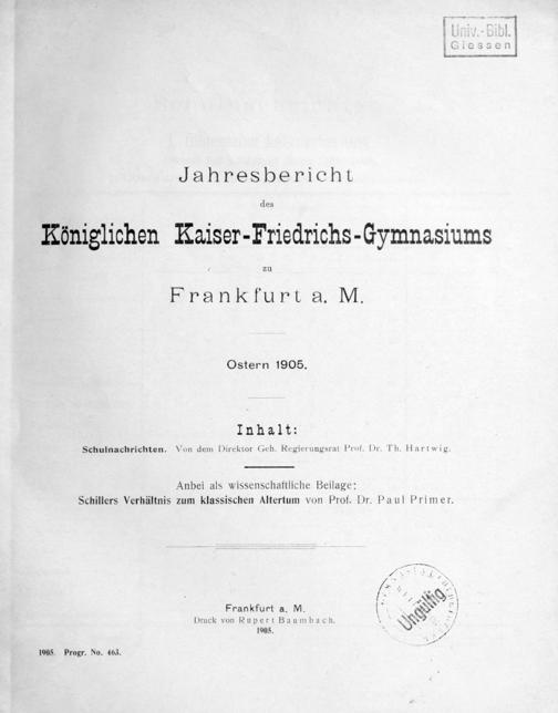 Jahresbericht des Kgl. Kaiser-Friedrichs-Gymnasiums zu Frankfurt am Main