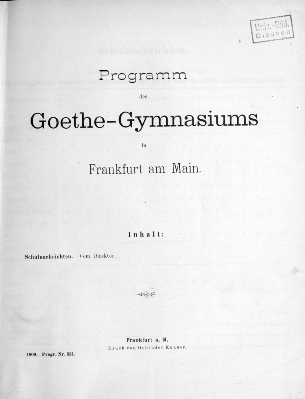 Programm des Goethe-Gymnasiums in Frankfurt a.M.
