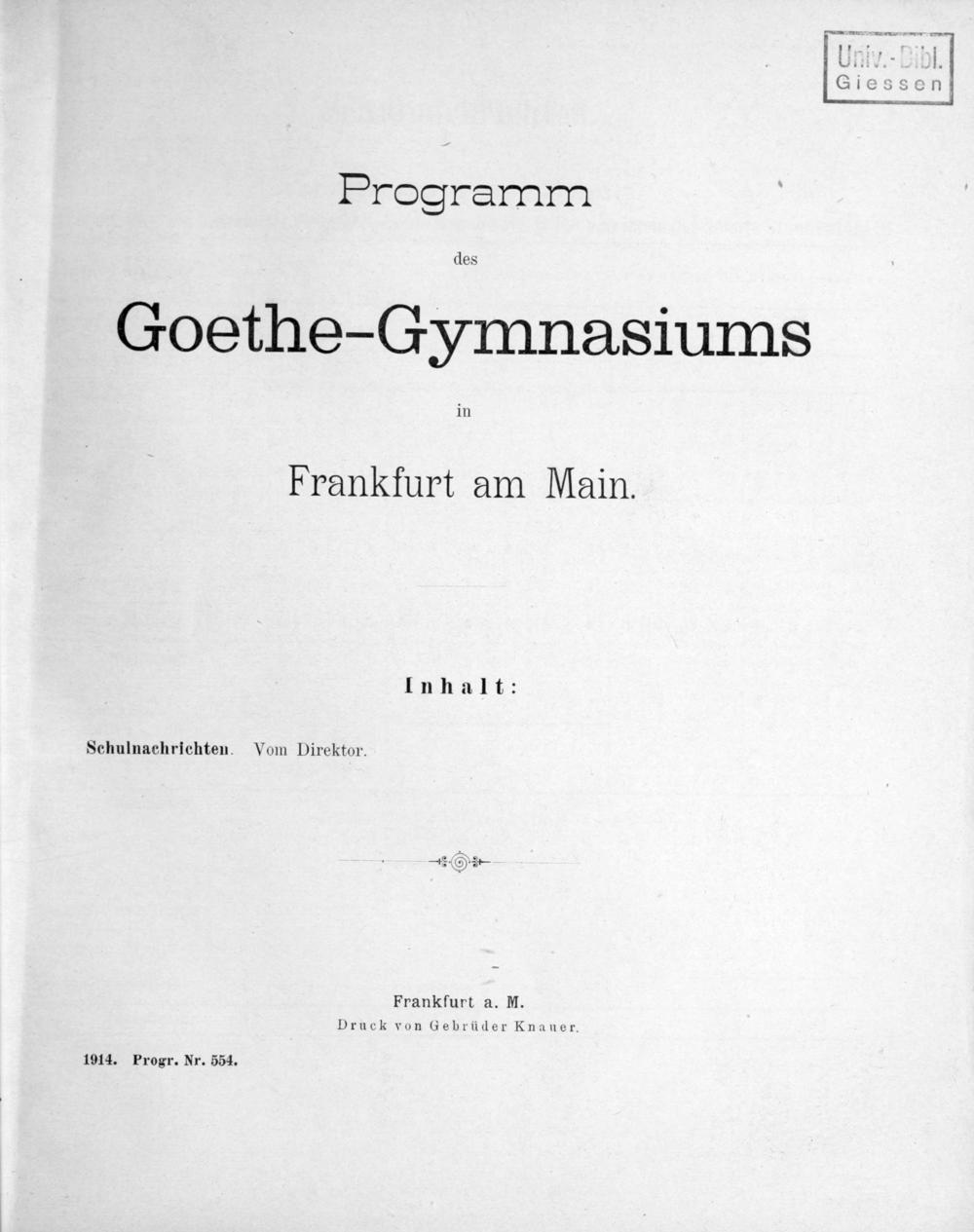 Programm des Goethe-Gymnasiums in Frankfurt a.M.