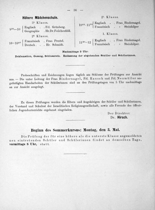 Einladungsschrift zu der öffentlichen Prüfung der Realschule der Israelitischen Religions-Gesellschaft zu Frankfurt am Main