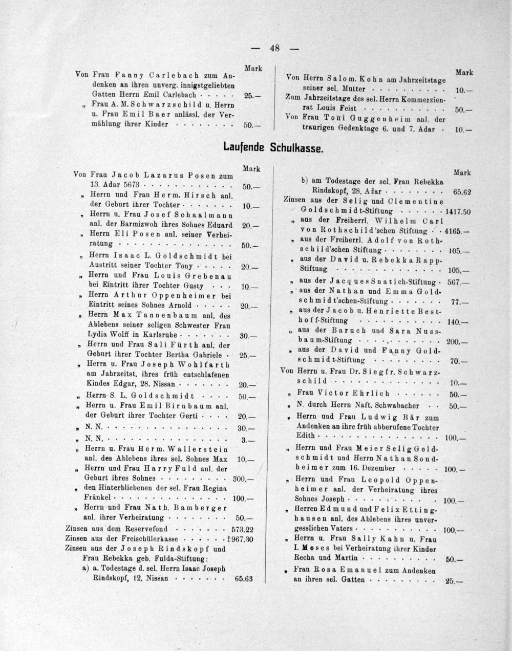 Festschrift zur Jubiläums-Feier des 50jährigen Bestehens der Unterrichtsanstalten der Israelitischen Religionsgesellschaft zu Frankfurt a.M. 1903