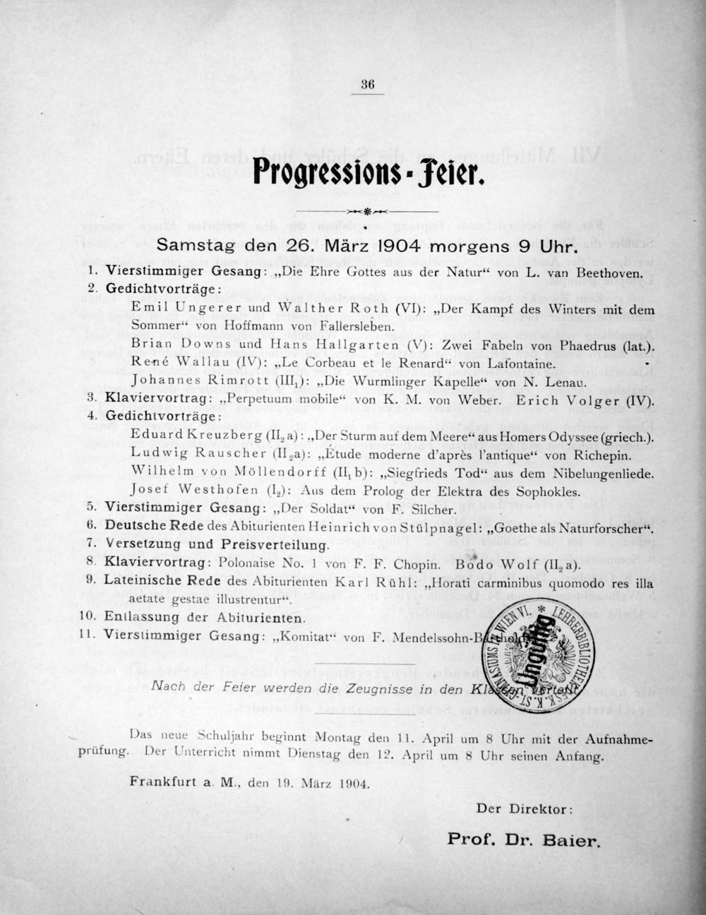 Programm des Lessing-Gymnasiums zu Frankfurt a.M.