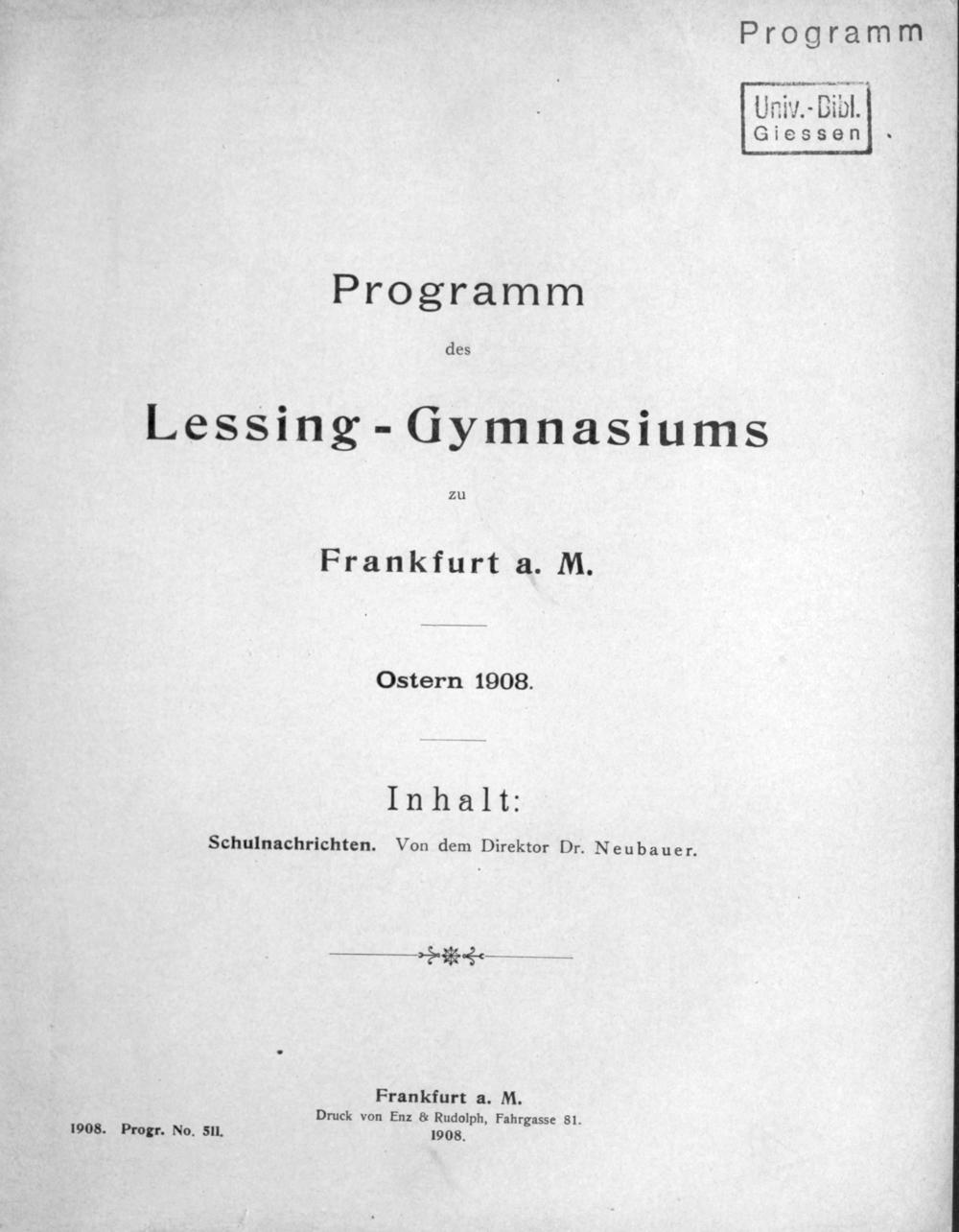 Programm des Lessing-Gymnasiums zu Frankfurt a.M.