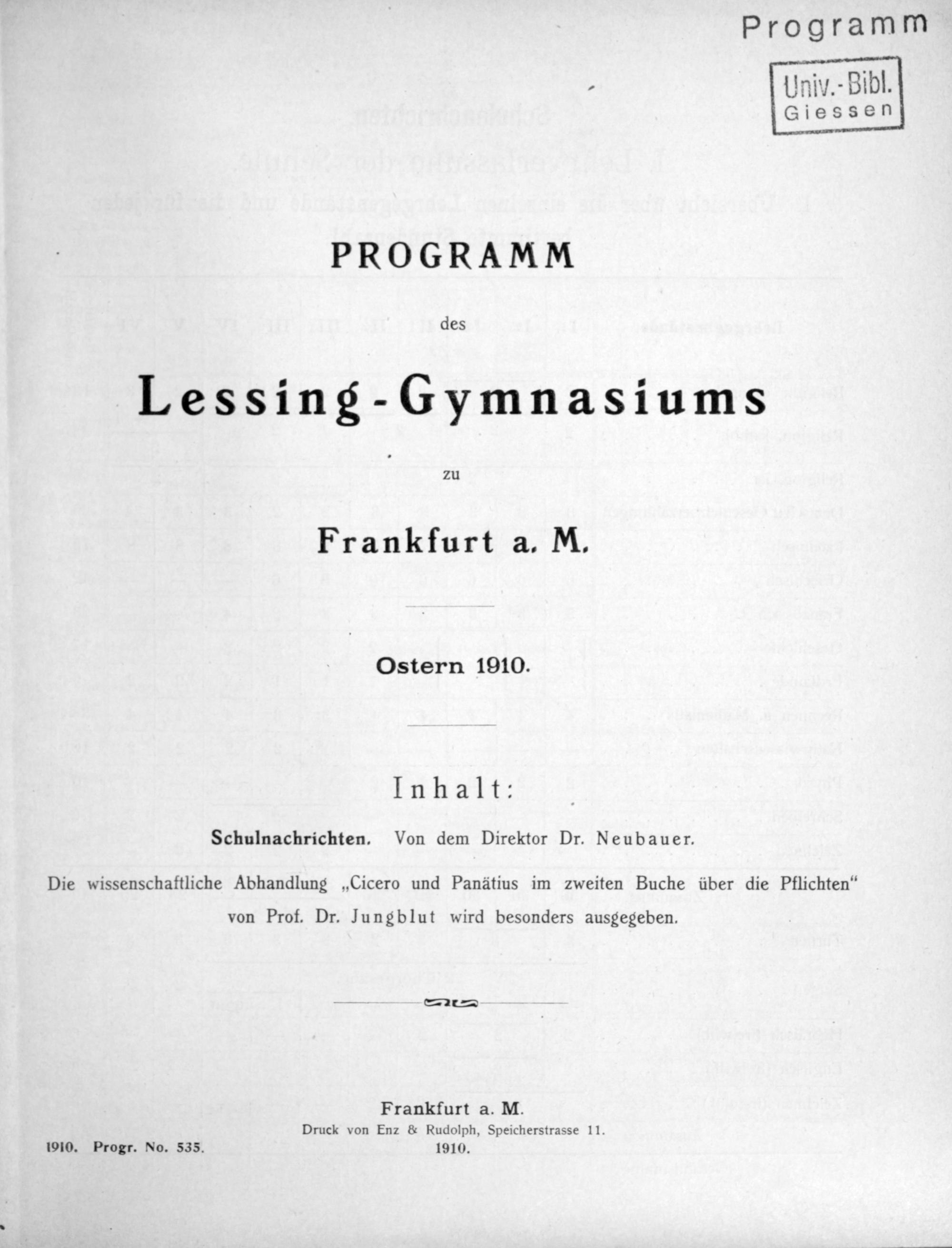 Programm des Lessing-Gymnasiums zu Frankfurt a.M.