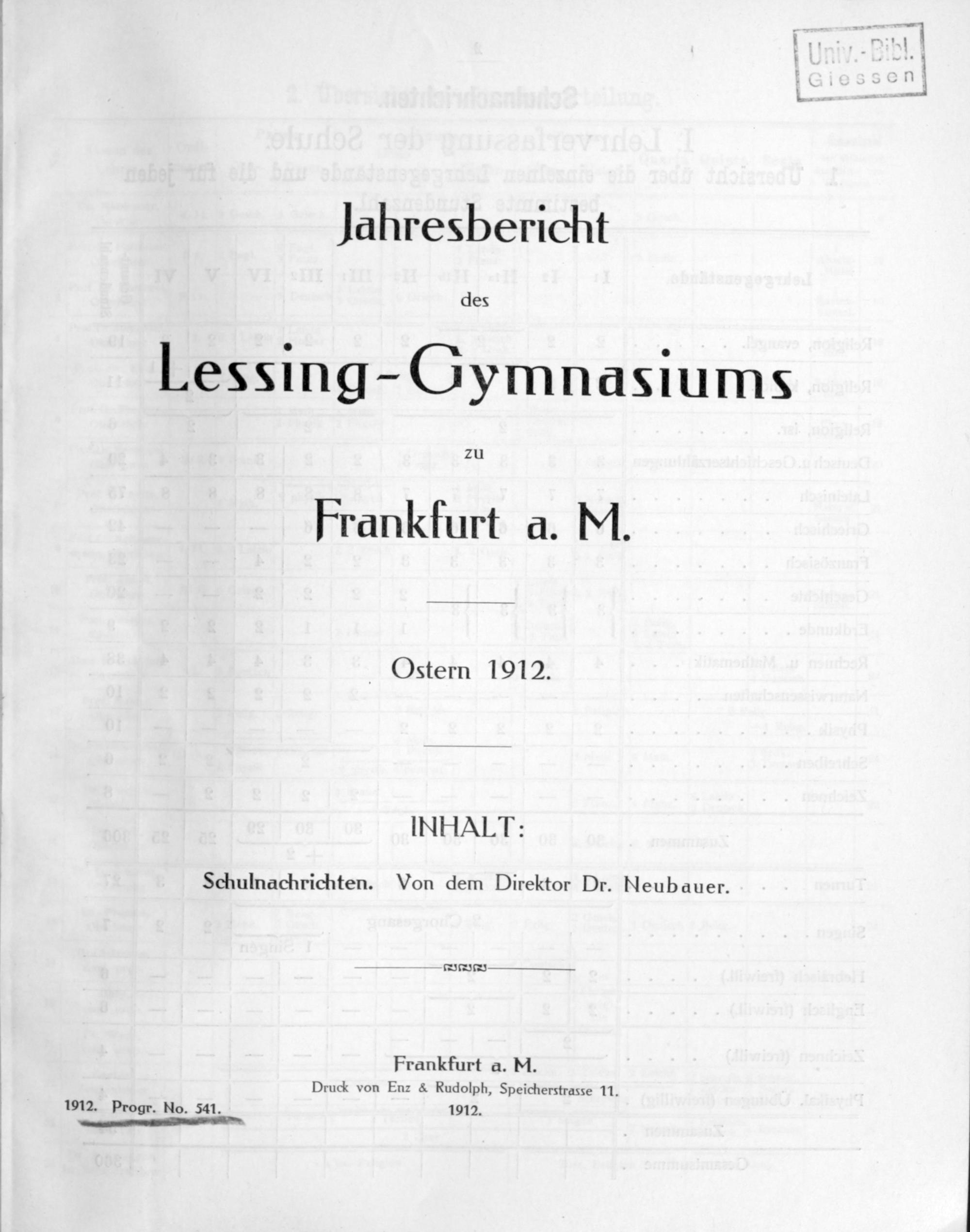 Jahresbericht des Lessing-Gymnasiums zu Frankfurt a.M.