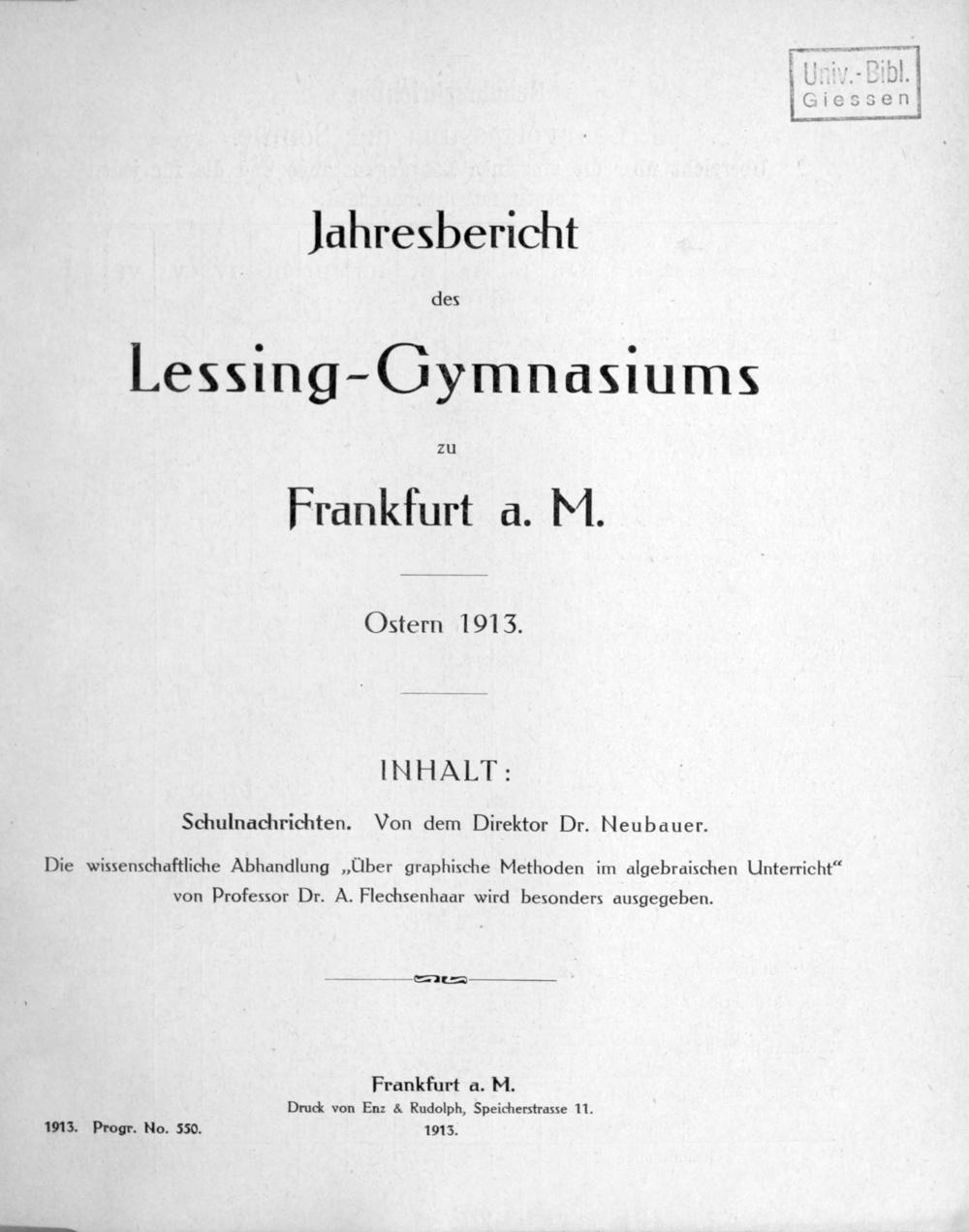 Jahresbericht des Lessing-Gymnasiums zu Frankfurt a.M.
