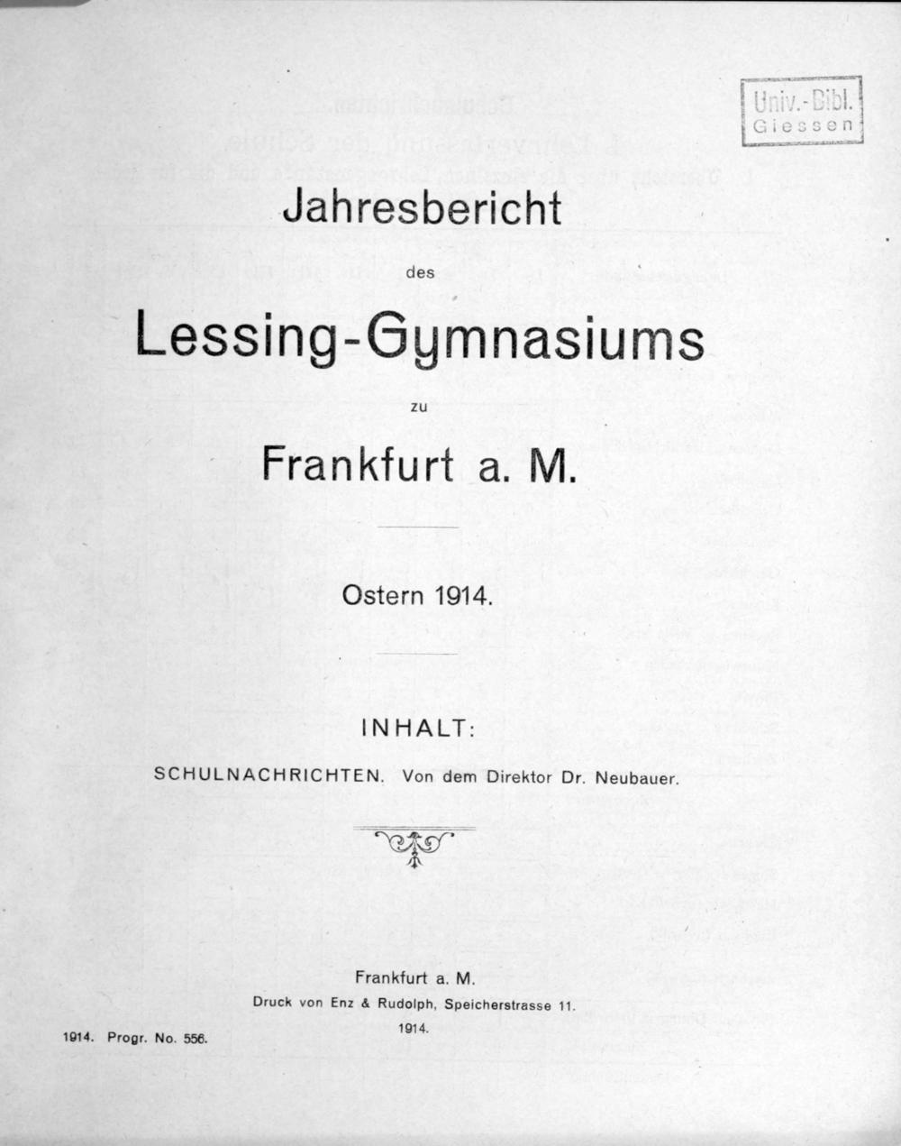 Jahresbericht des Lessing-Gymnasiums zu Frankfurt a.M.