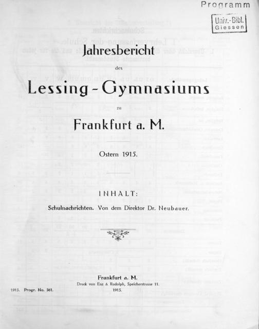 Jahresbericht des Lessing-Gymnasiums zu Frankfurt a.M.