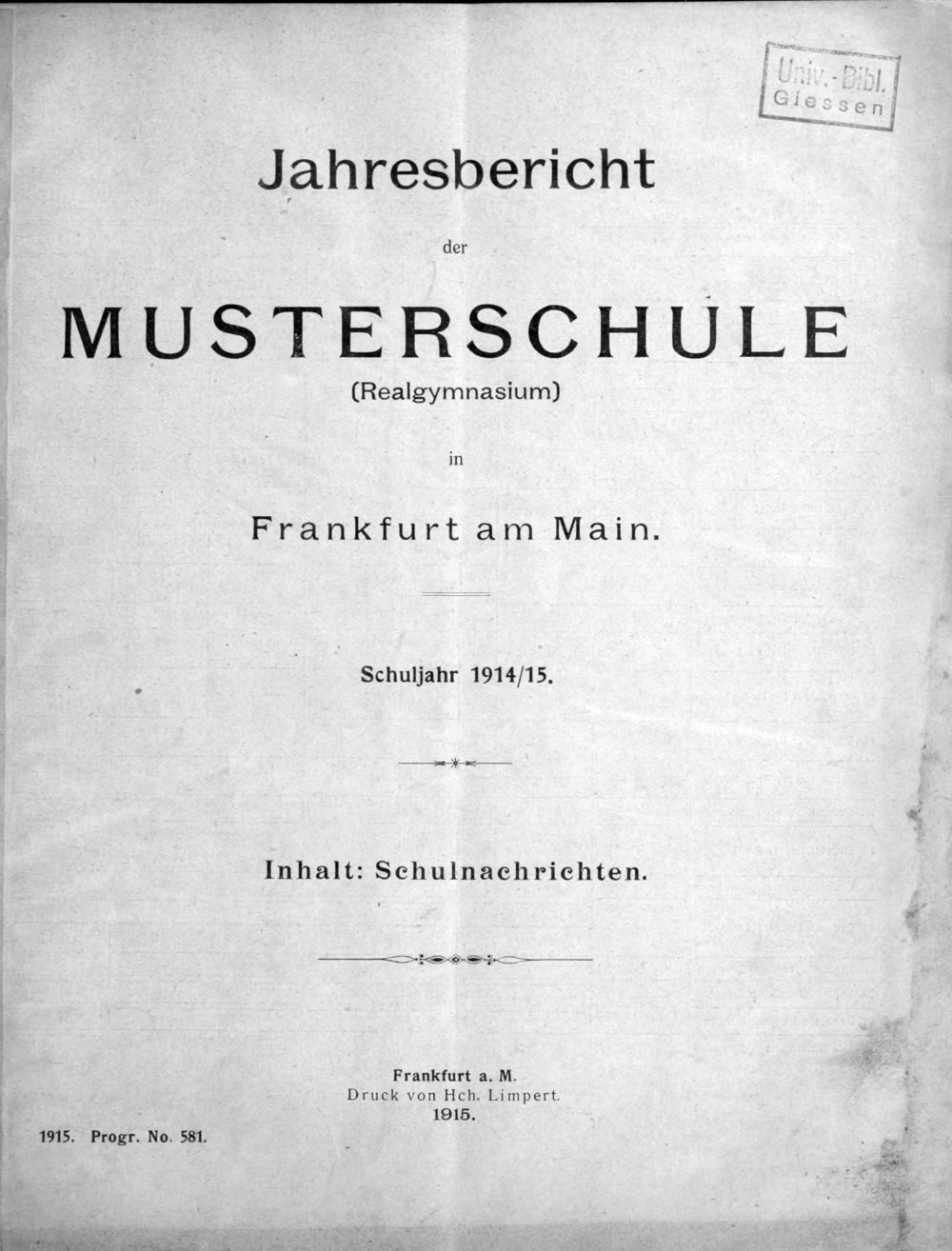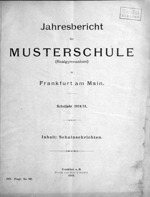 Vom Werden, Wirken und Wesen der Musterschule. Festgabe zum einhundertfünfundzwanzigjährigen Jubiläum 1803-1928