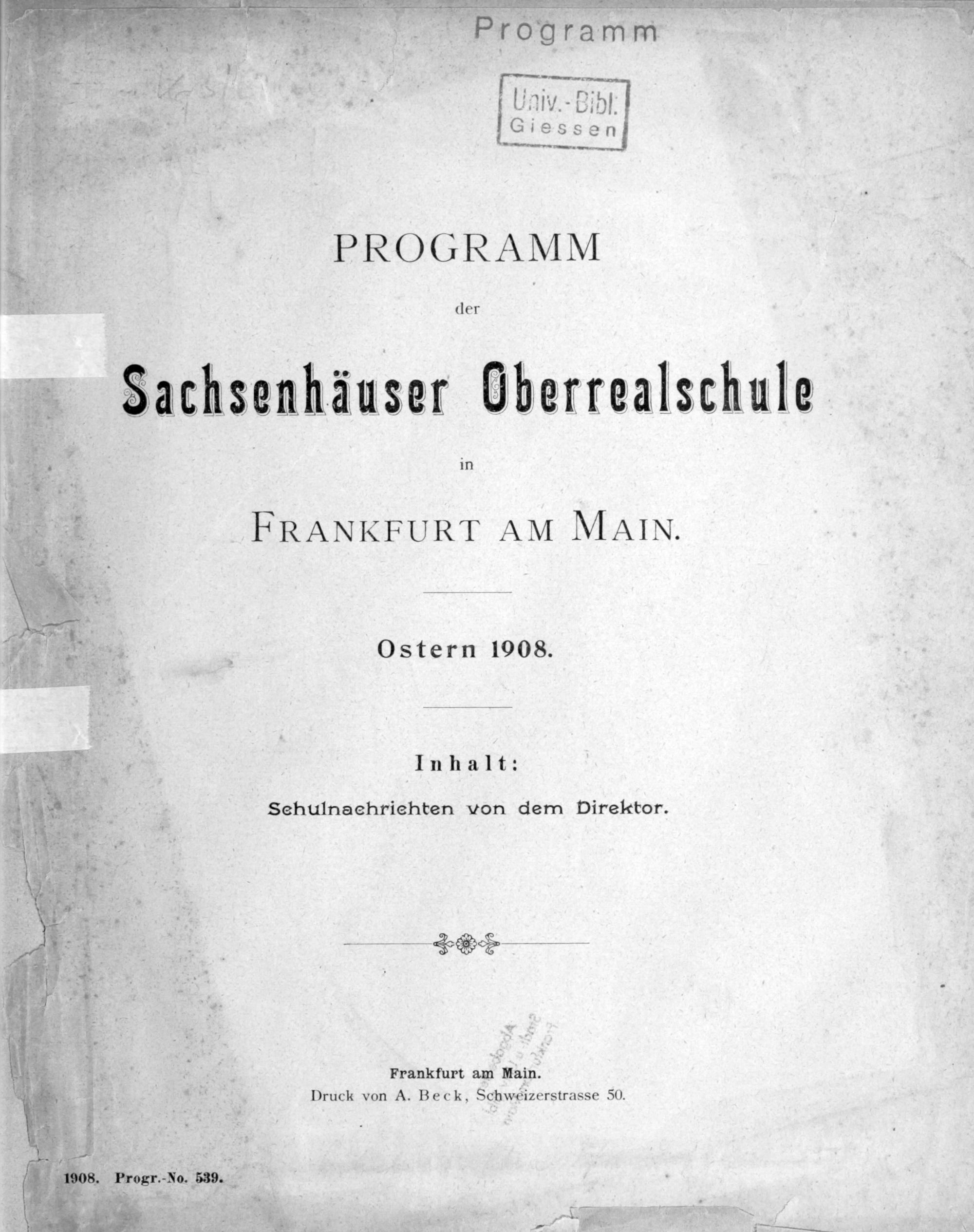 Programm der Sachsenhäuser Oberrealschule in Frankfurt am Main