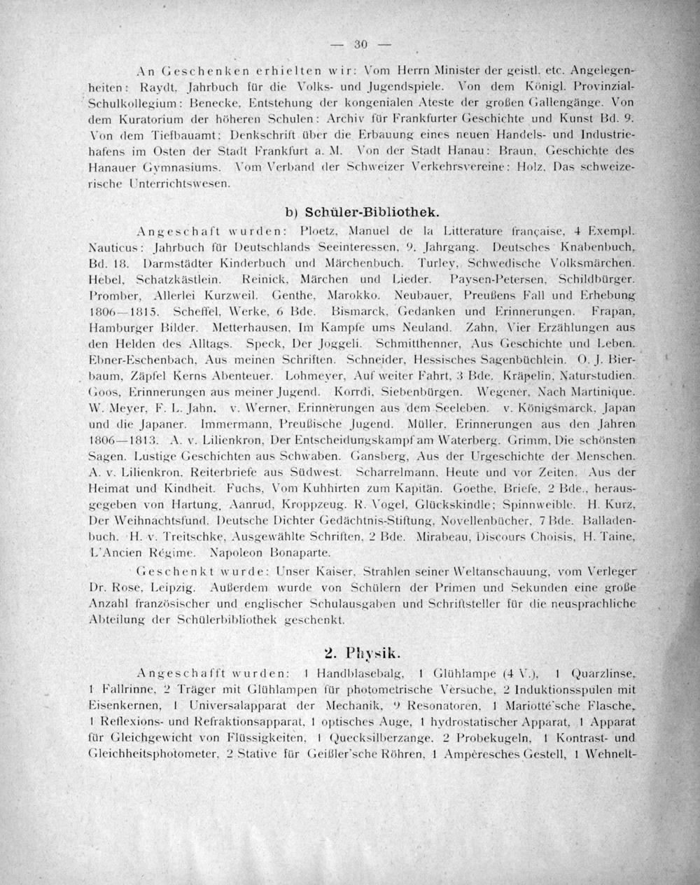 Programm der Sachsenhäuser Oberrealschule in Frankfurt am Main