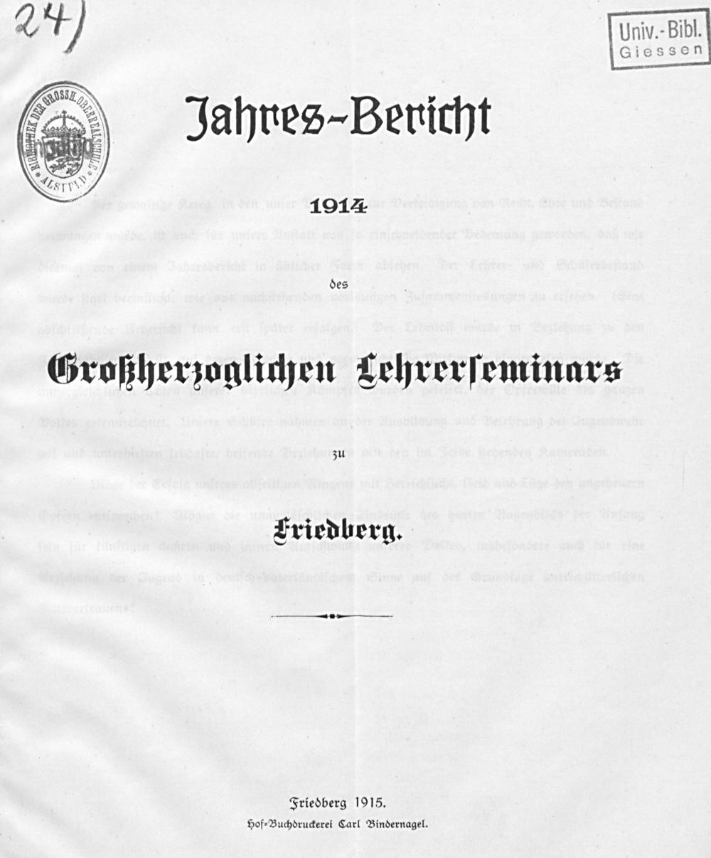 Jahresbericht der Hessischen Aufbauschule zu Friedberg (Hessen) für das Schuljahr ...