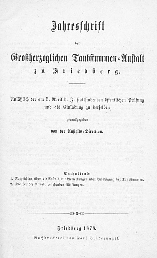 Jahresschrift der Großherzoglichen Taubstummenanstalt zu Friedberg