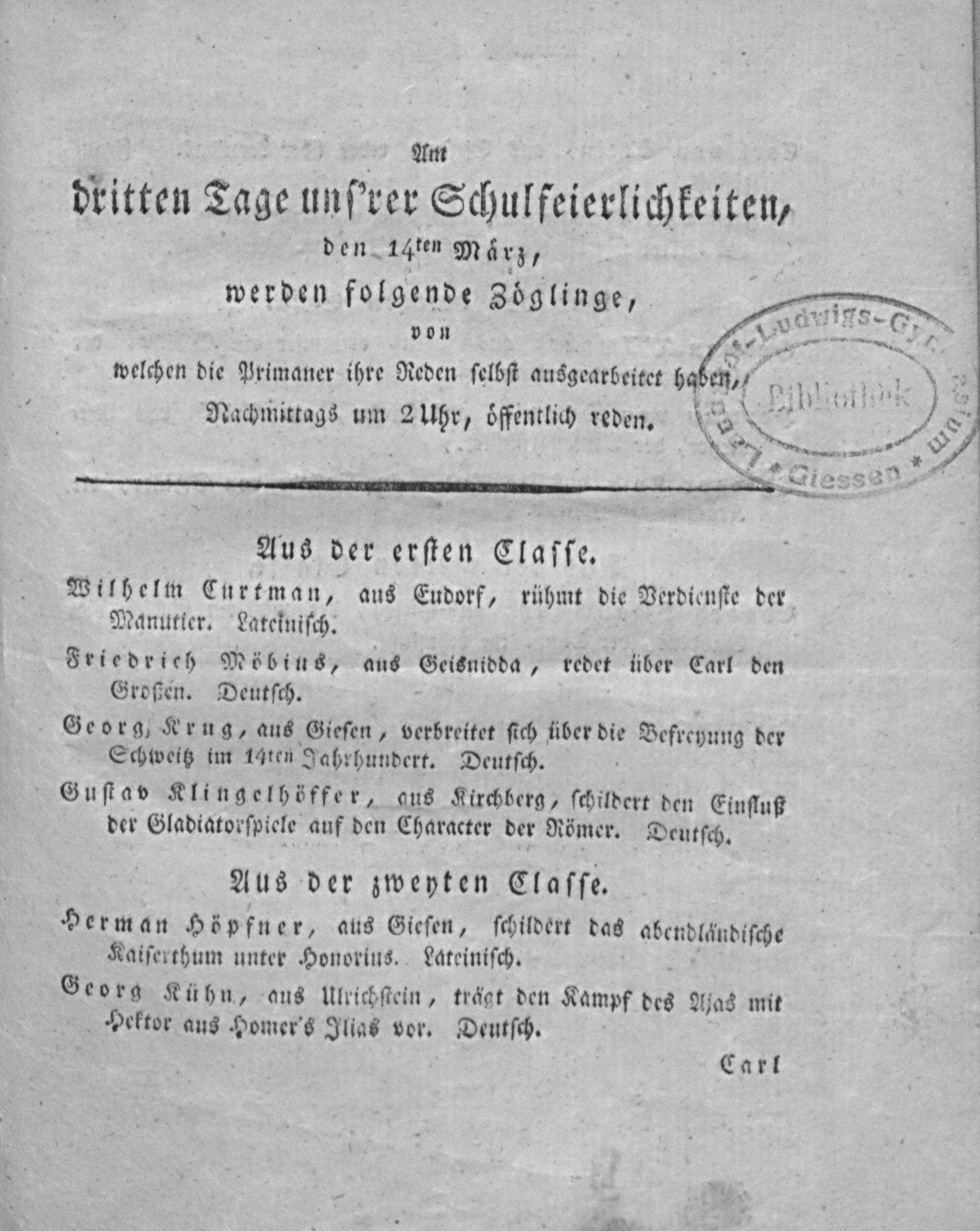 Gymnasii Academici Gissensis examina publica diebus ... instituenda indicit