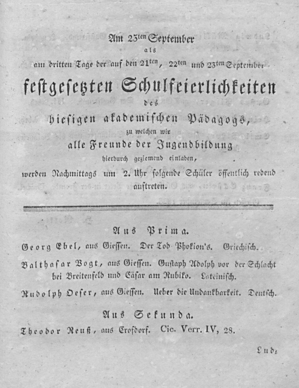 Gymnasii Academici Gissensis examina publica diebus ... instituenda indicit