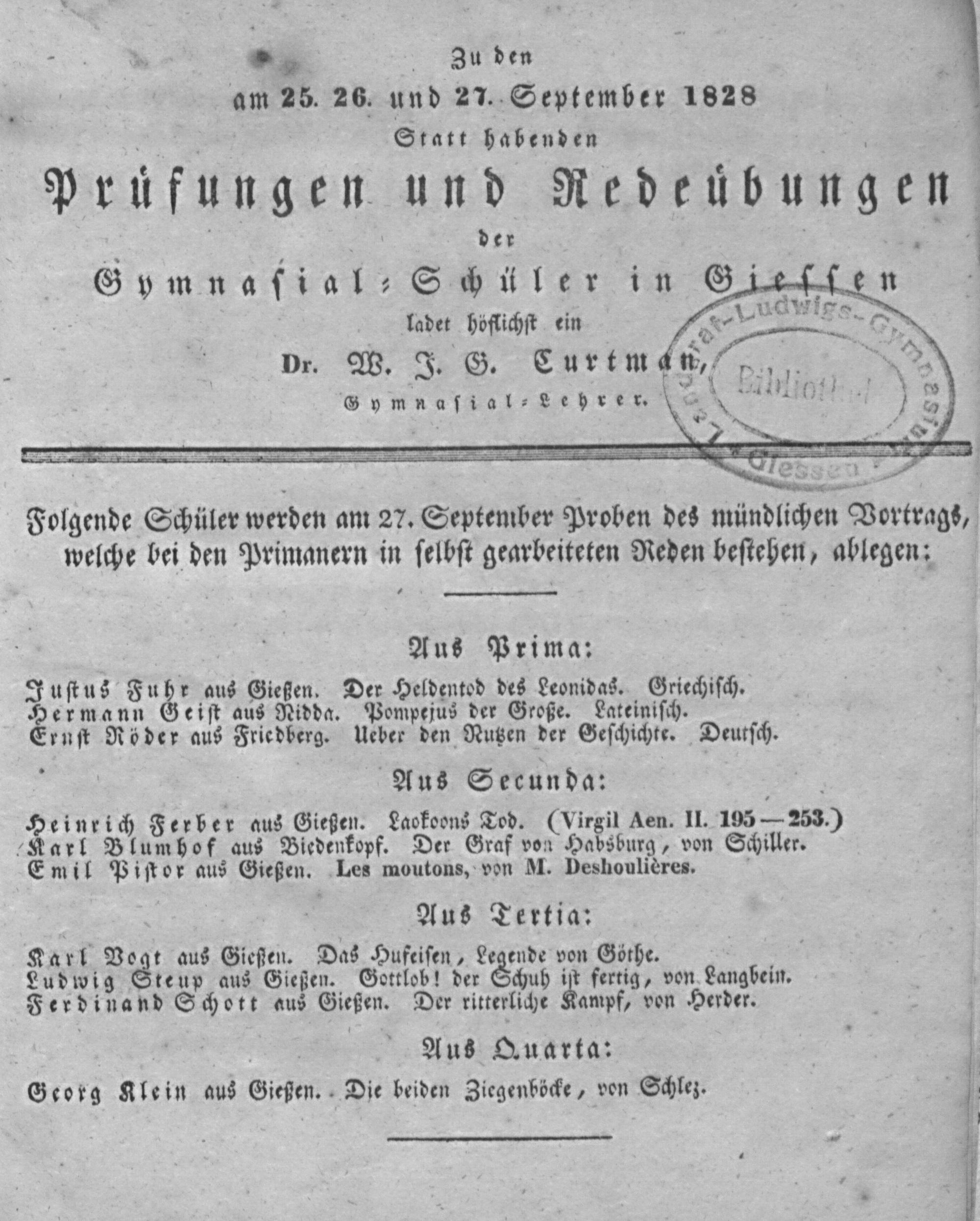 Gymnasii Academici Gissensis examina publica diebus ... instituenda indicit