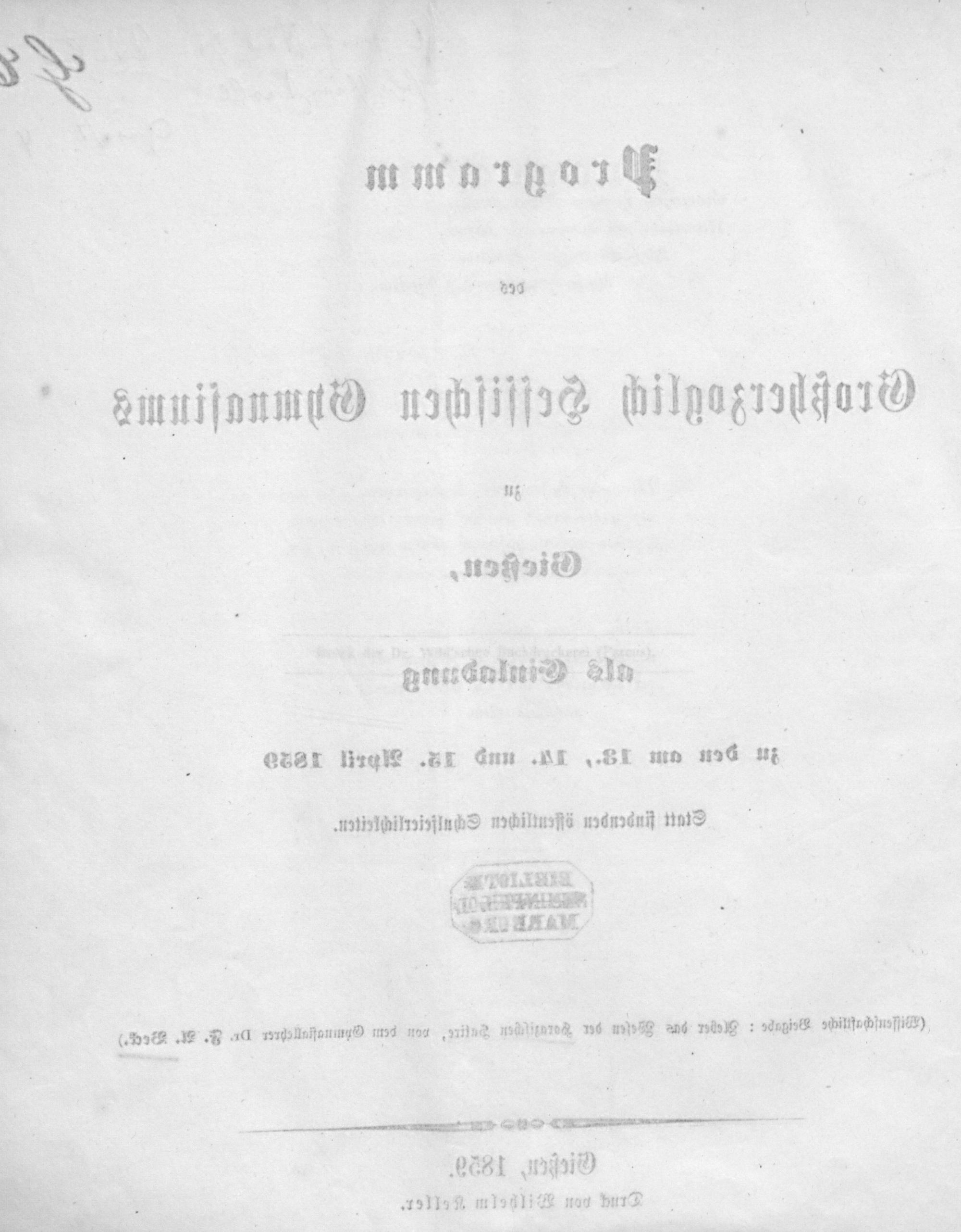 Programm des Großherzoglich-Hessischen Gymnasiums zu Gießen