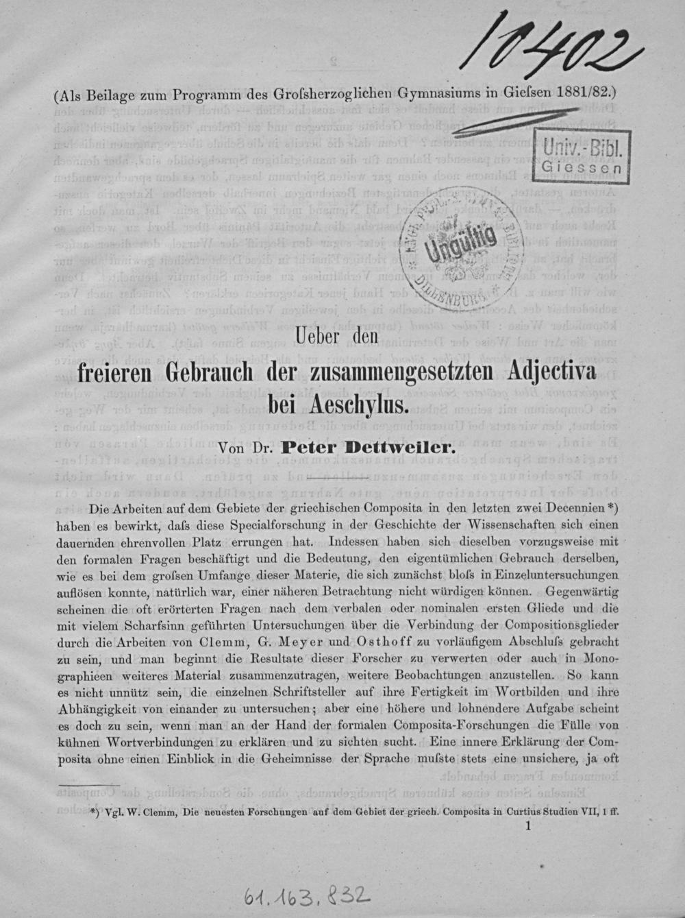 Programm des Großherzoglich-Hessischen Gymnasiums zu Gießen