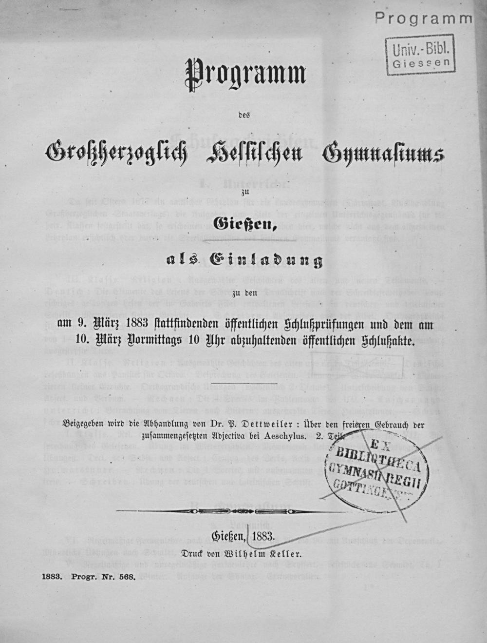 Programm des Großherzoglich-Hessischen Gymnasiums zu Gießen