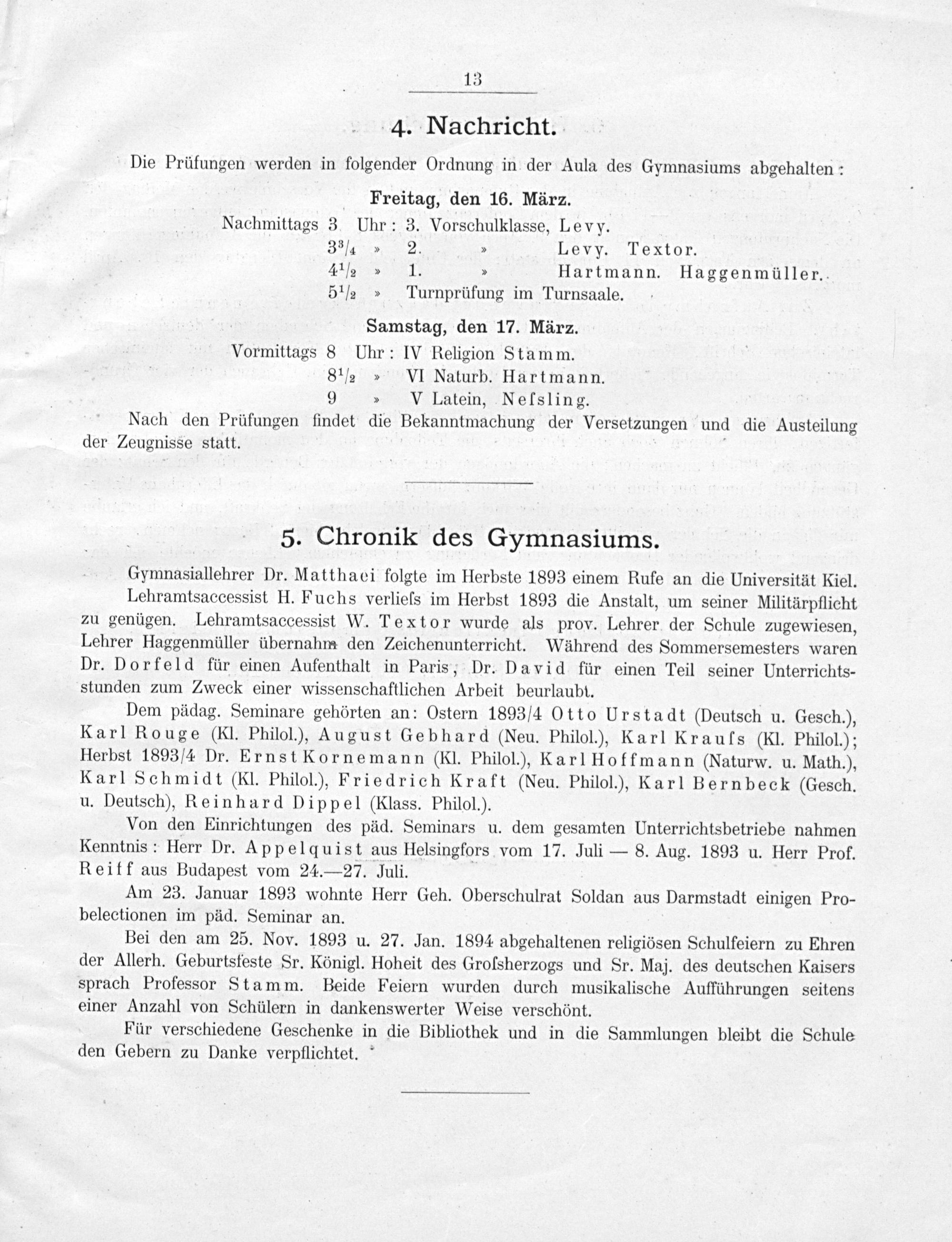Programm des Großherzoglich-Hessischen Gymnasiums zu Gießen