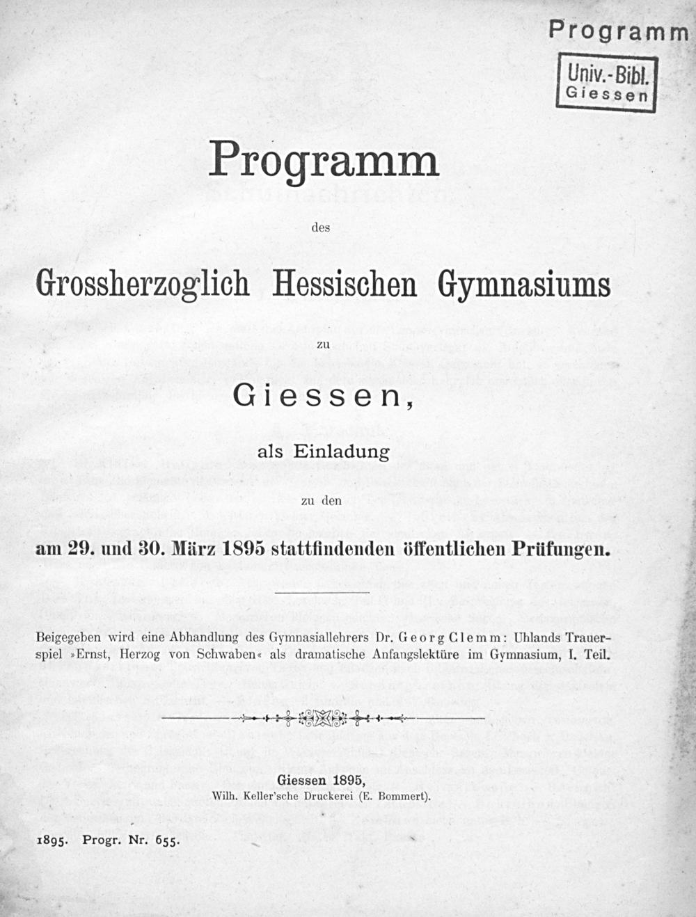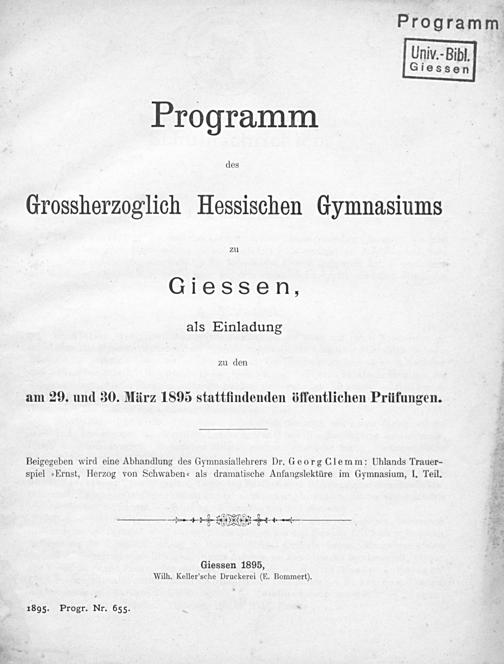 Programm des Großherzoglich-Hessischen Gymnasiums zu Gießen