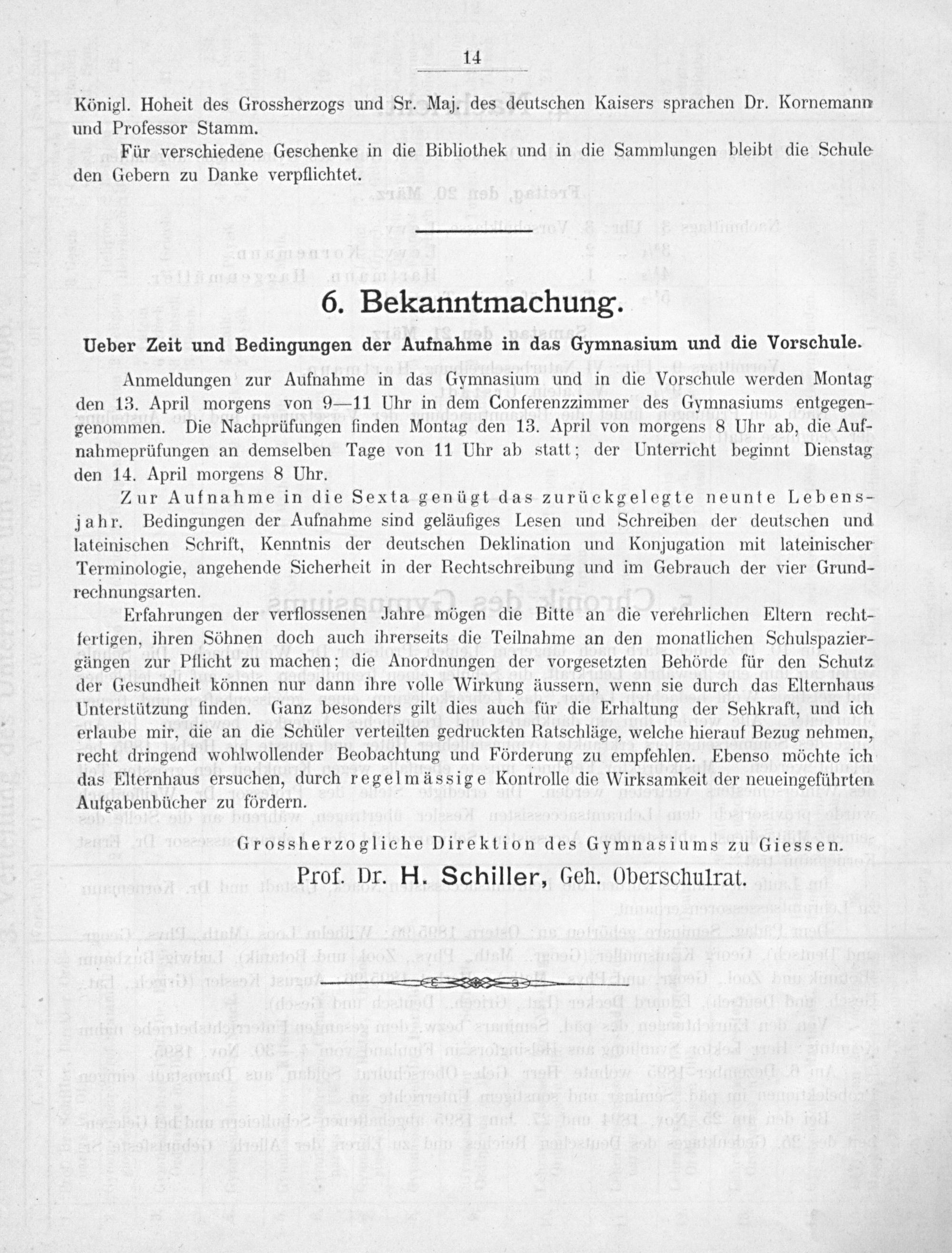 Programm des Großherzoglich-Hessischen Gymnasiums zu Gießen