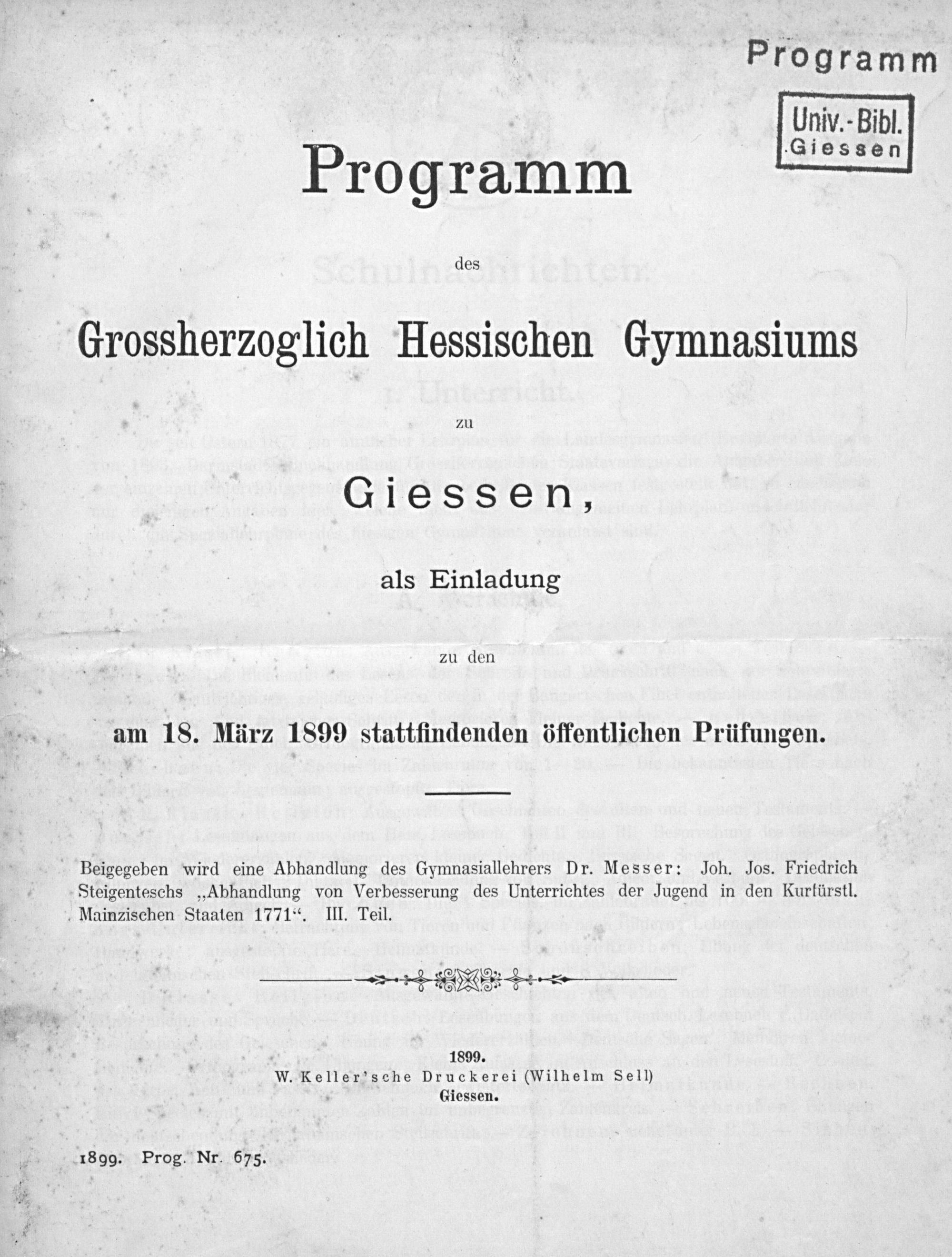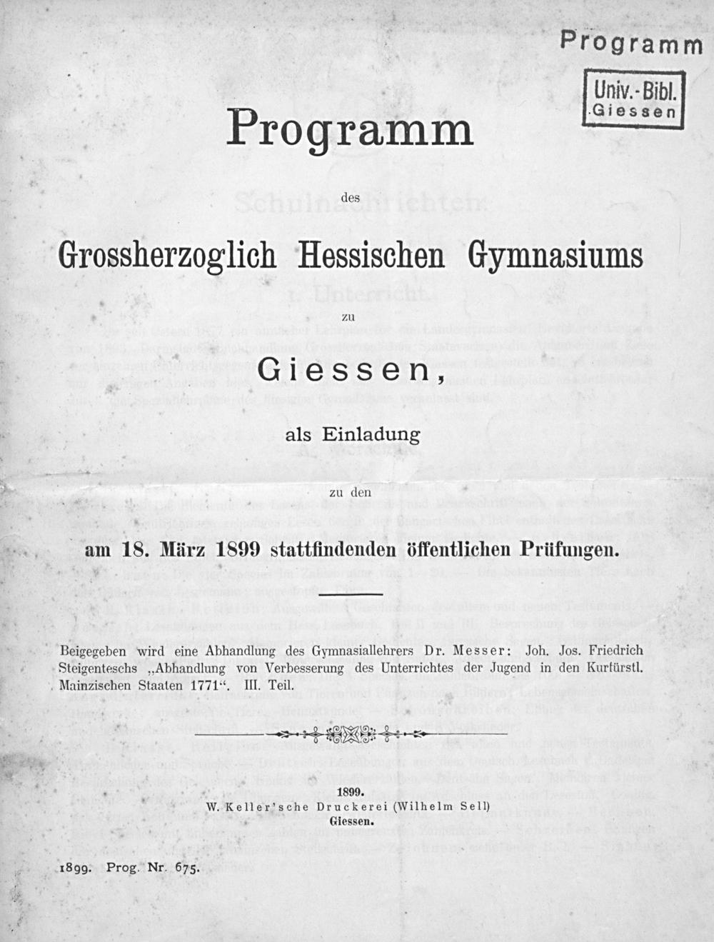 Programm des Großherzoglich-Hessischen Gymnasiums zu Gießen