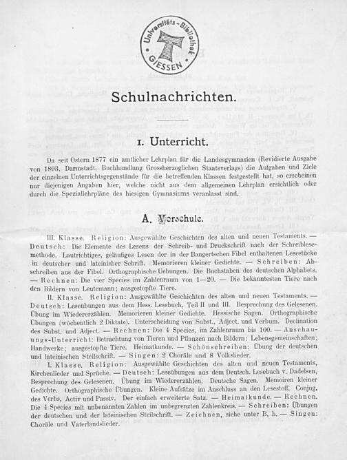 Programm des Großherzoglich-Hessischen Gymnasiums zu Gießen