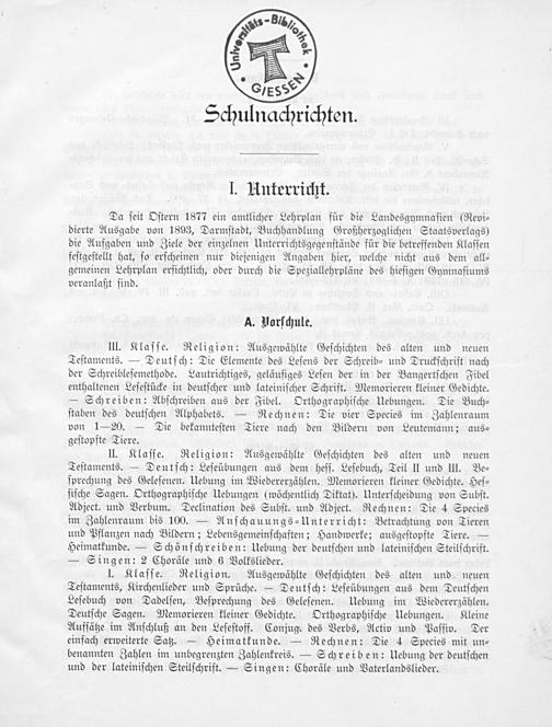 Programm des Großherzoglich-Hessischen Gymnasiums zu Gießen