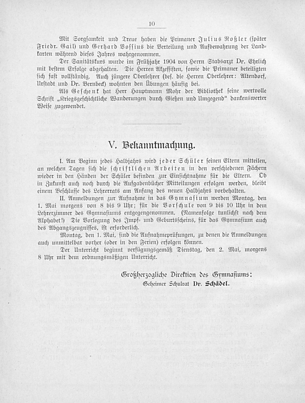 Jahresbericht des Großherzoglich Hessischen Gymnasiums zu Gießen