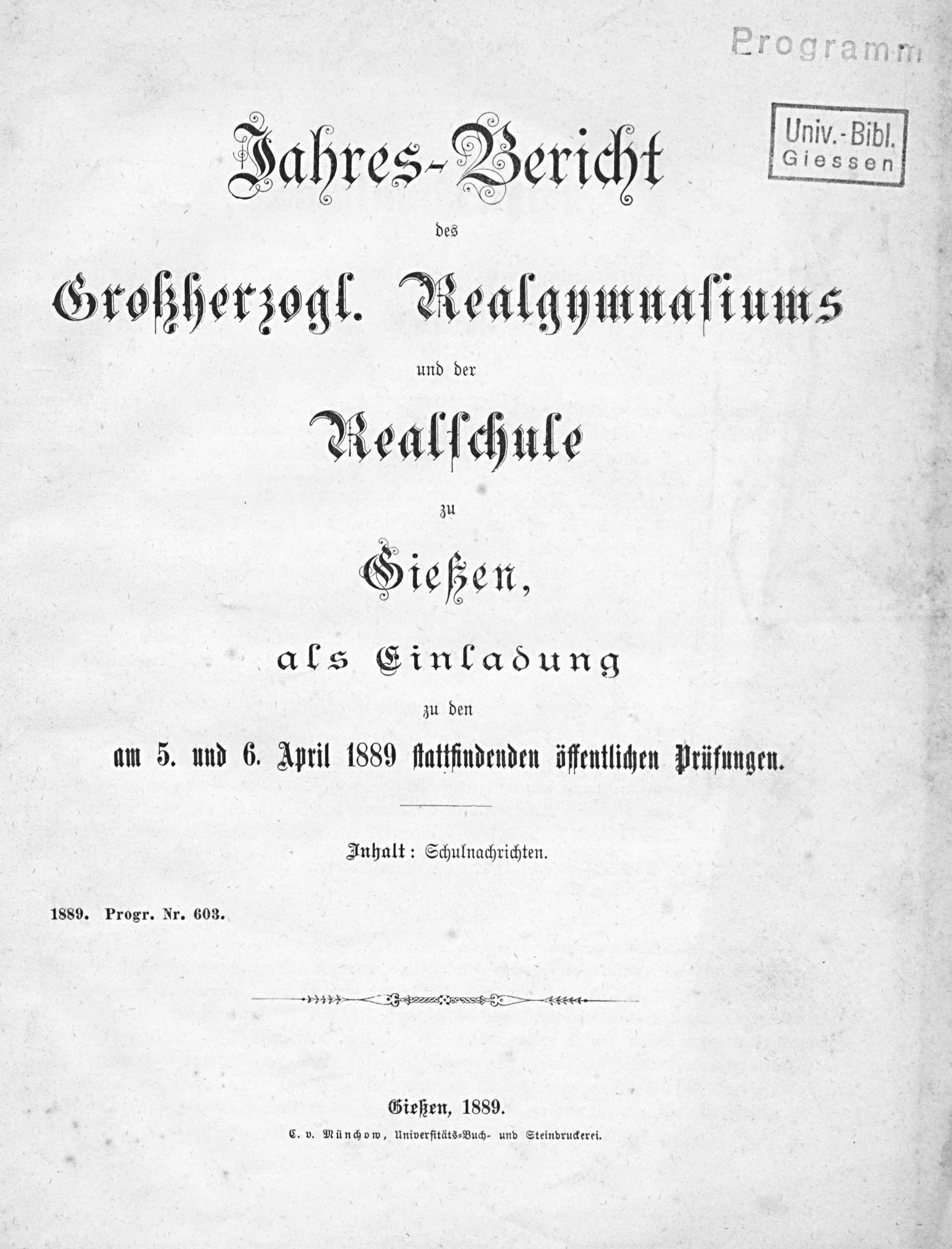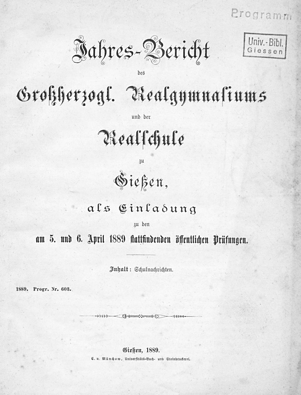Jahres-Bericht des Großherzoglichen Realgymnasiums und der Realschule zu Gießen