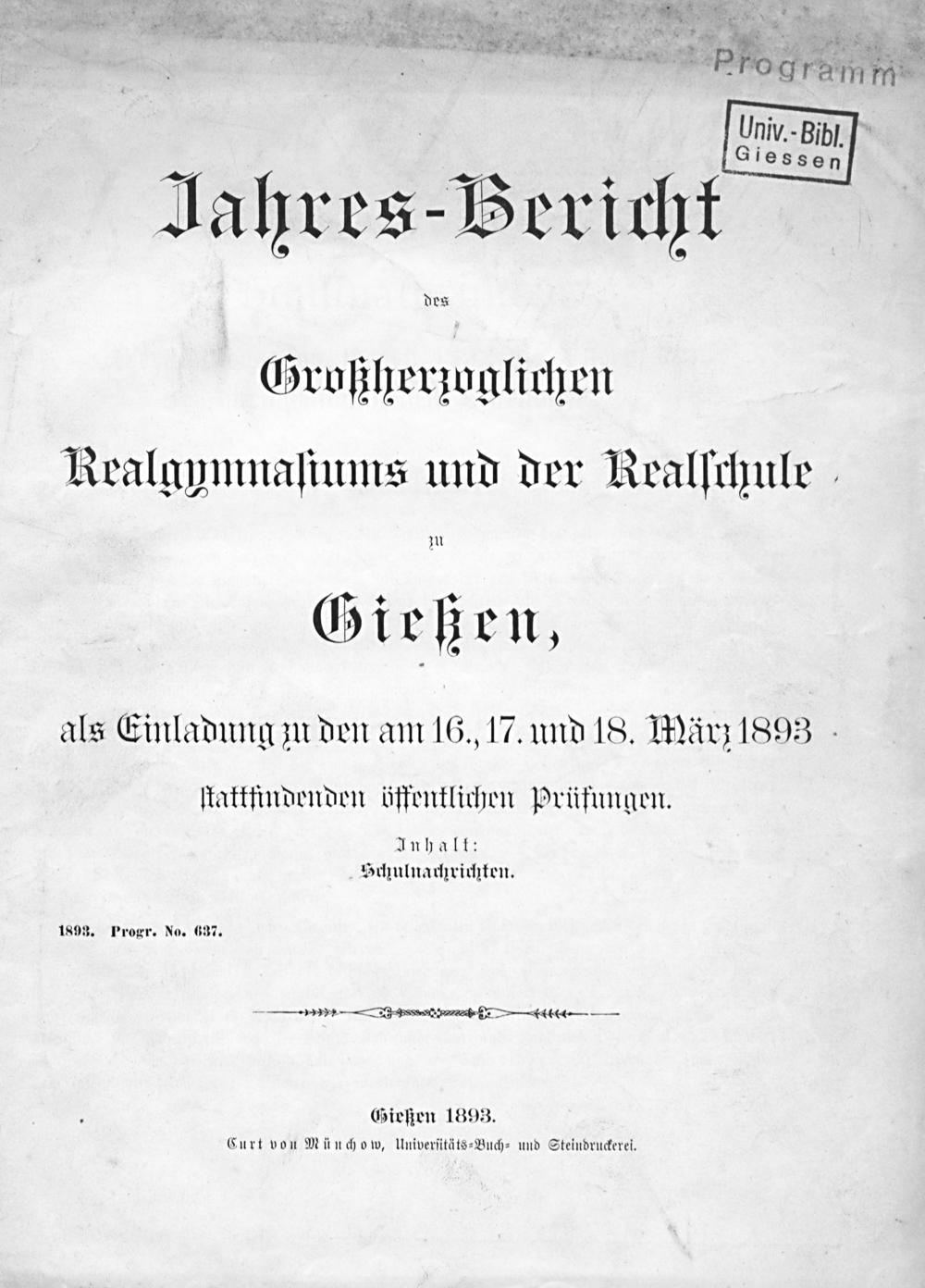 Jahres-Bericht des Großherzoglichen Realgymnasiums und der Realschule zu Gießen