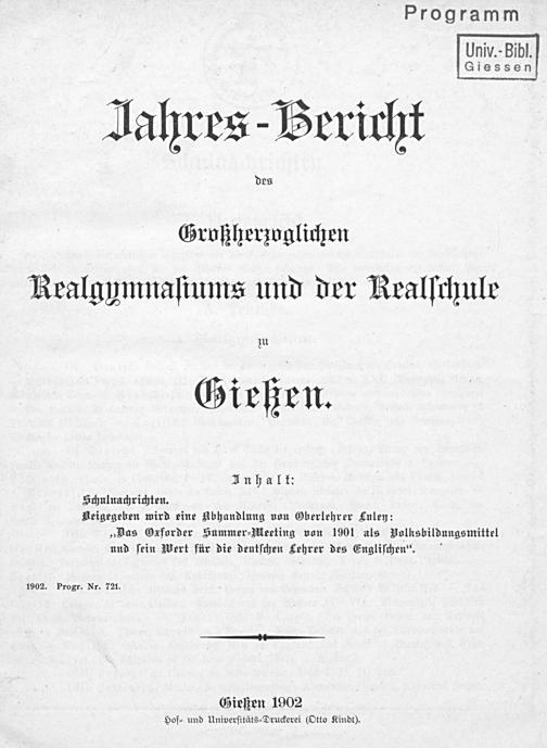 Jahres-Bericht des Großherzoglichen Realgymnasiums und der Realschule zu Gießen
