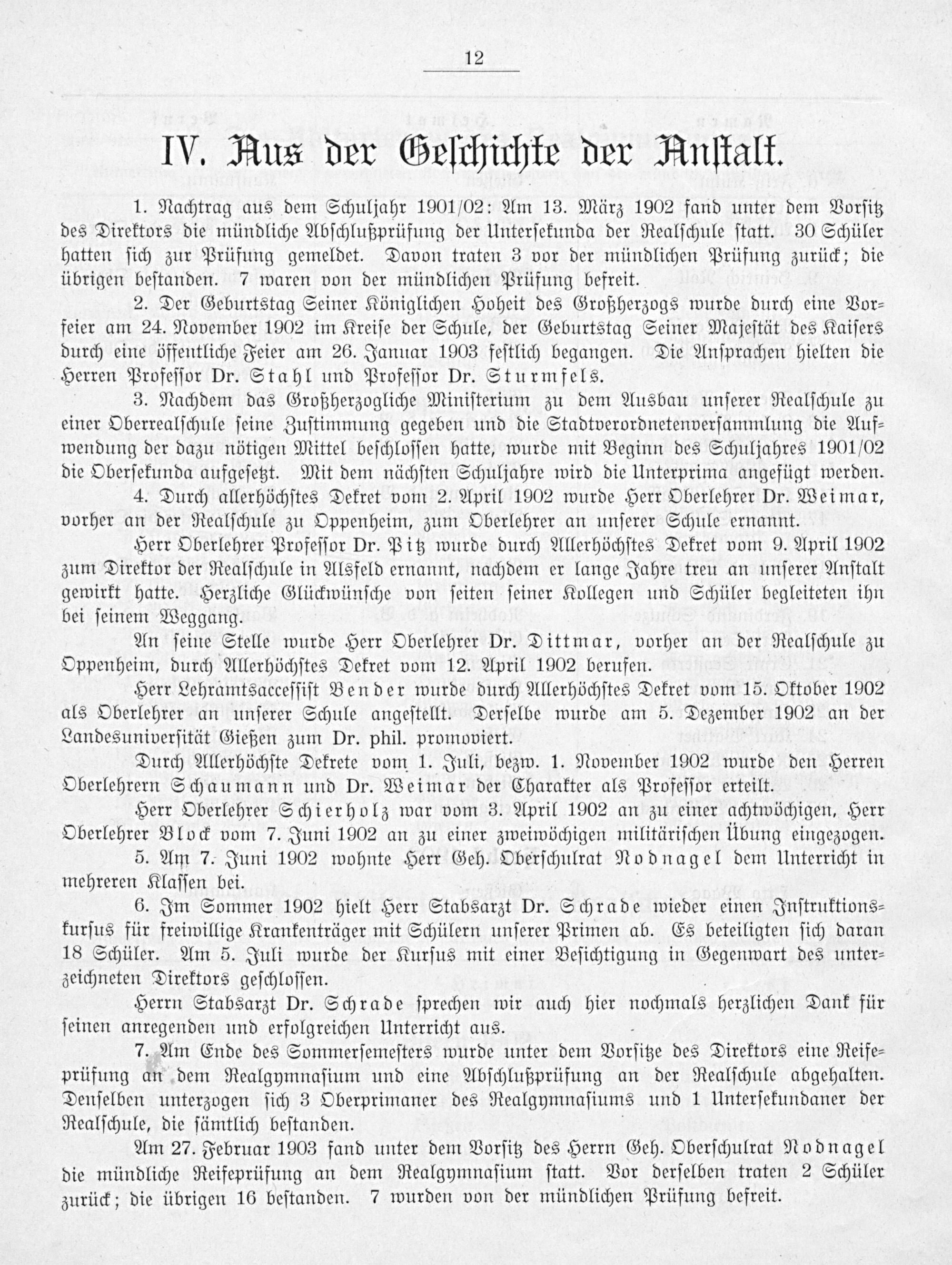 Jahres-Bericht des Großherzoglichen Realgymnasiums und der Realschule zu Gießen