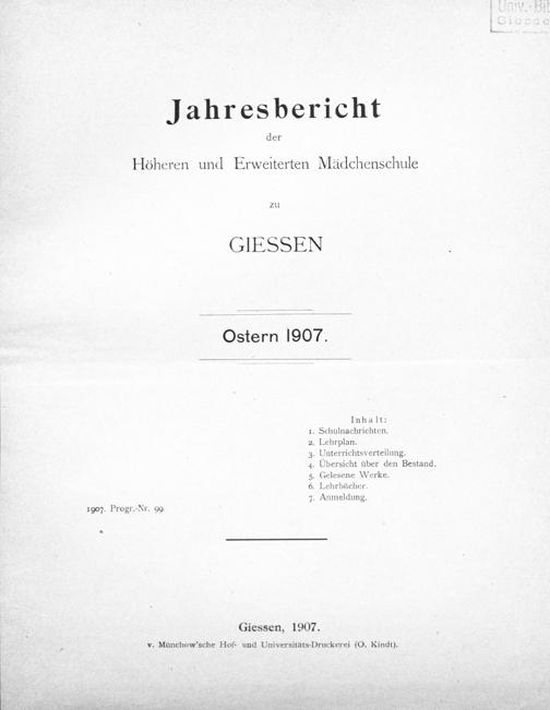 Jahresbericht der Hessischen Studienanstalt zu Gießen